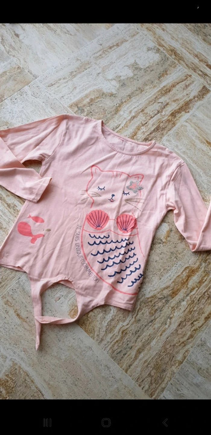 T-shirt fille 10 ans. Chat sirène. Petit nœud dans le bas. Comme neuf. #eve.08_vetement_fille_10ans