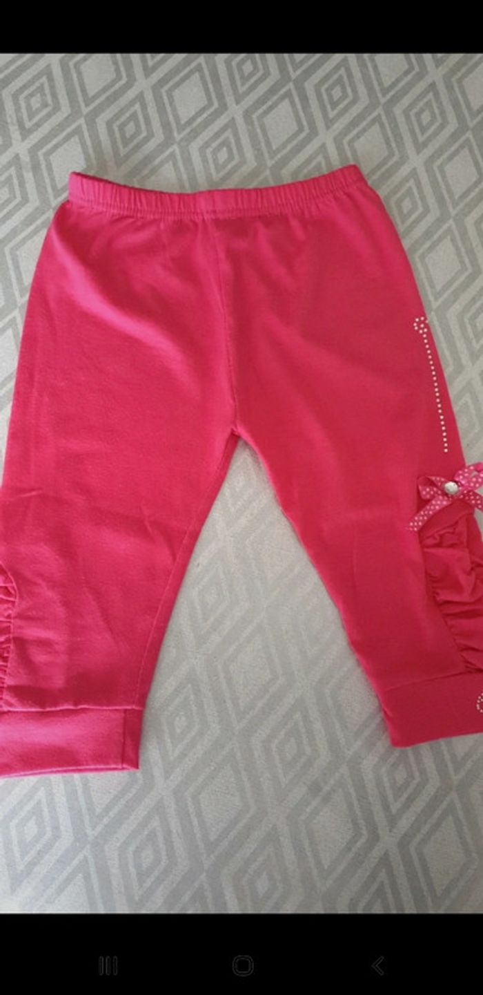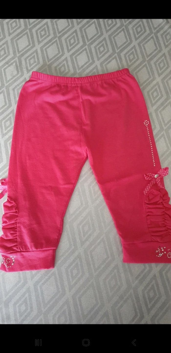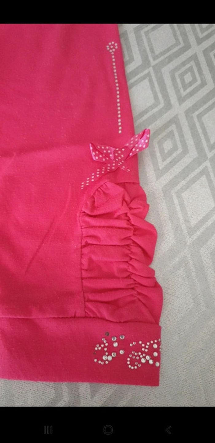 Leggings rose. Taille 6 ans. Strasses sur les côtés et petits nœuds. Effet bouffant. 3/4 de jambes #eve.08_vetement_fille_6ans