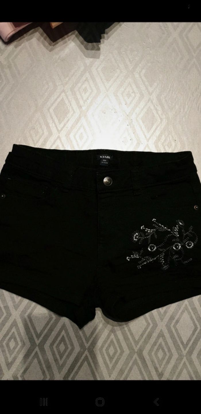 Short noir. Taille 10 ans. Très bon état. Petit dessin sur la gauche. Couleur noire. Porté 2 ou 3 fois. #eve.08_vetement_fille_10ans