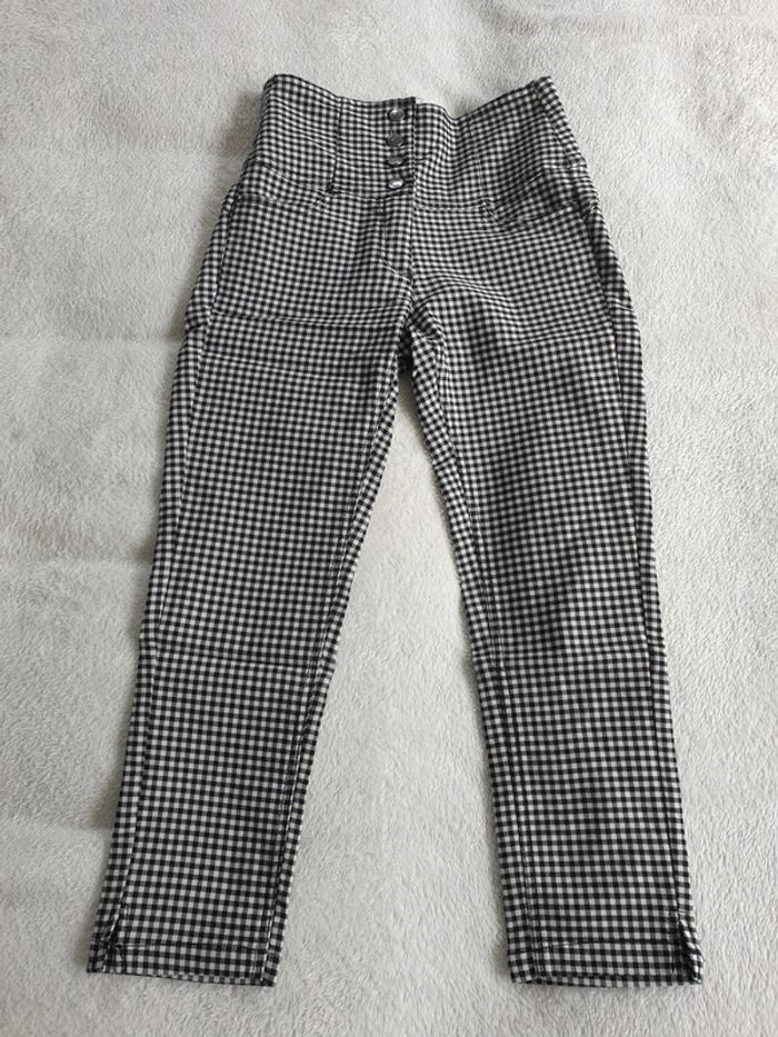 Pantalon 3/4 taille haute. Taille 36. A carreaux. Nombreuses poches et boutons. Tres souple. #eve.08_vetement_femme_S