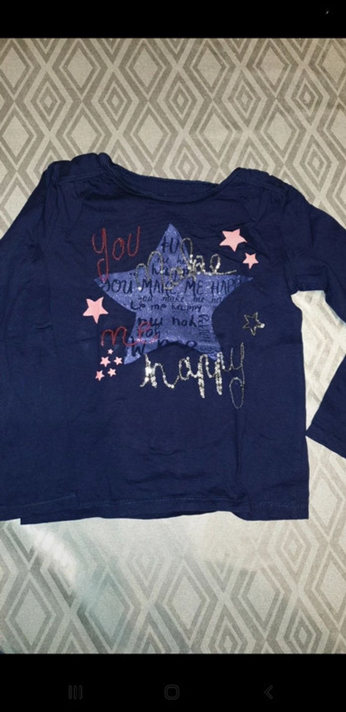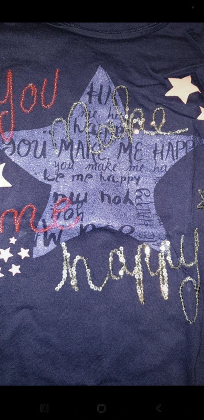 T-shirt fille 6 ans. Bleu marine. Dessin paillettes et strasses. Manches longues. Très bon état. #eve.08_vetement_fille_6ans