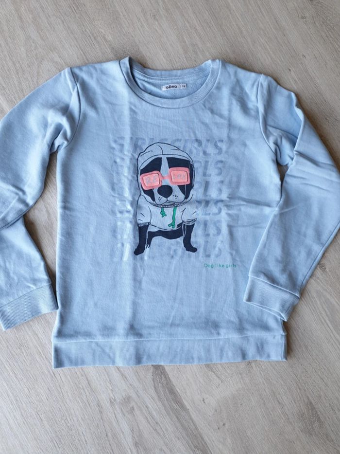 Sweat shirt fille 12 ans. Bleu avec chien. Très bon état. #eve.08_vetement_fille_12ans