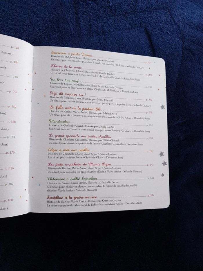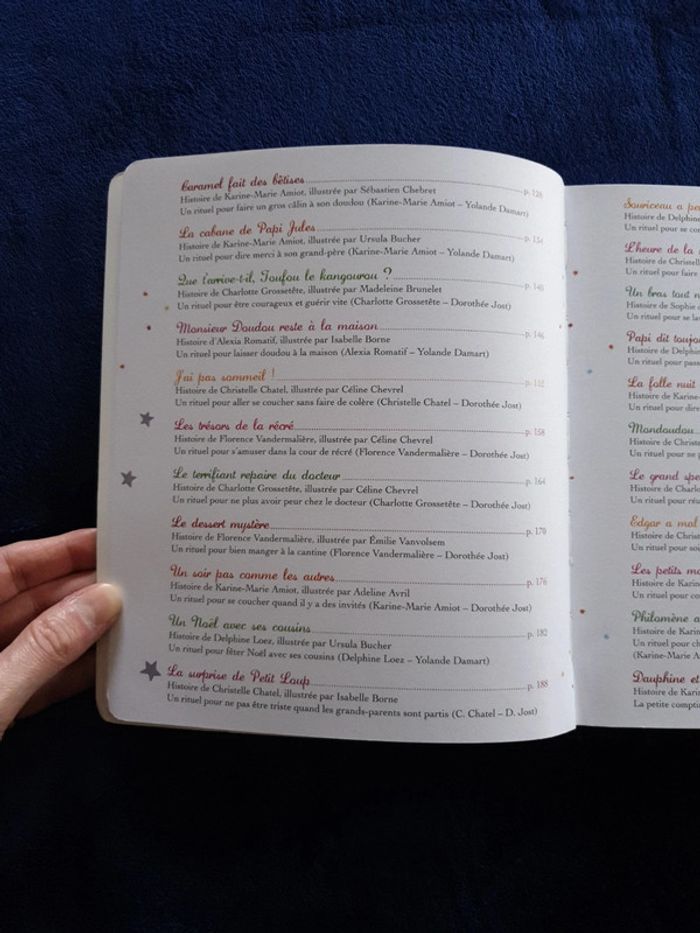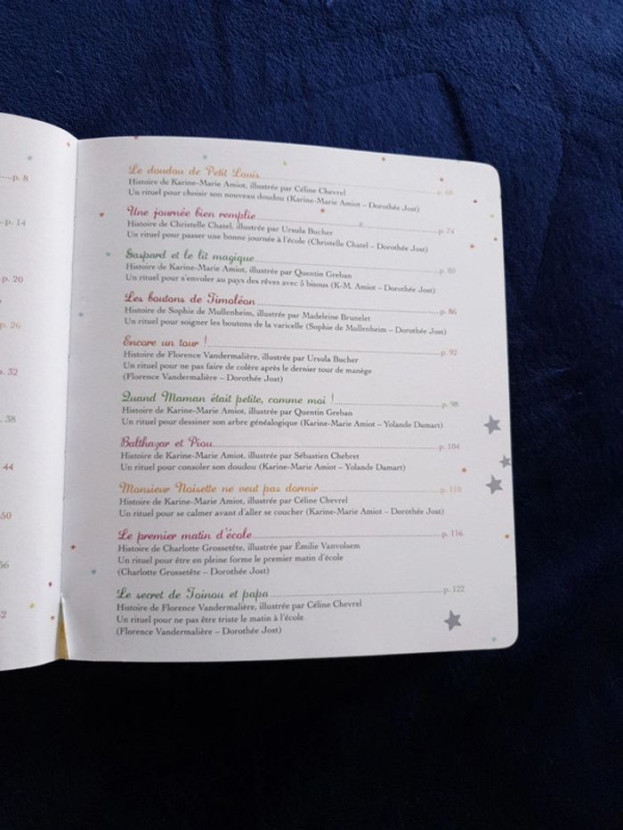 Livre Histoires du soir pour les petits. 259 pages d'histoires et de petits rituels. La couverture du livre est en relief. Tres bon état. #eve.08_livre