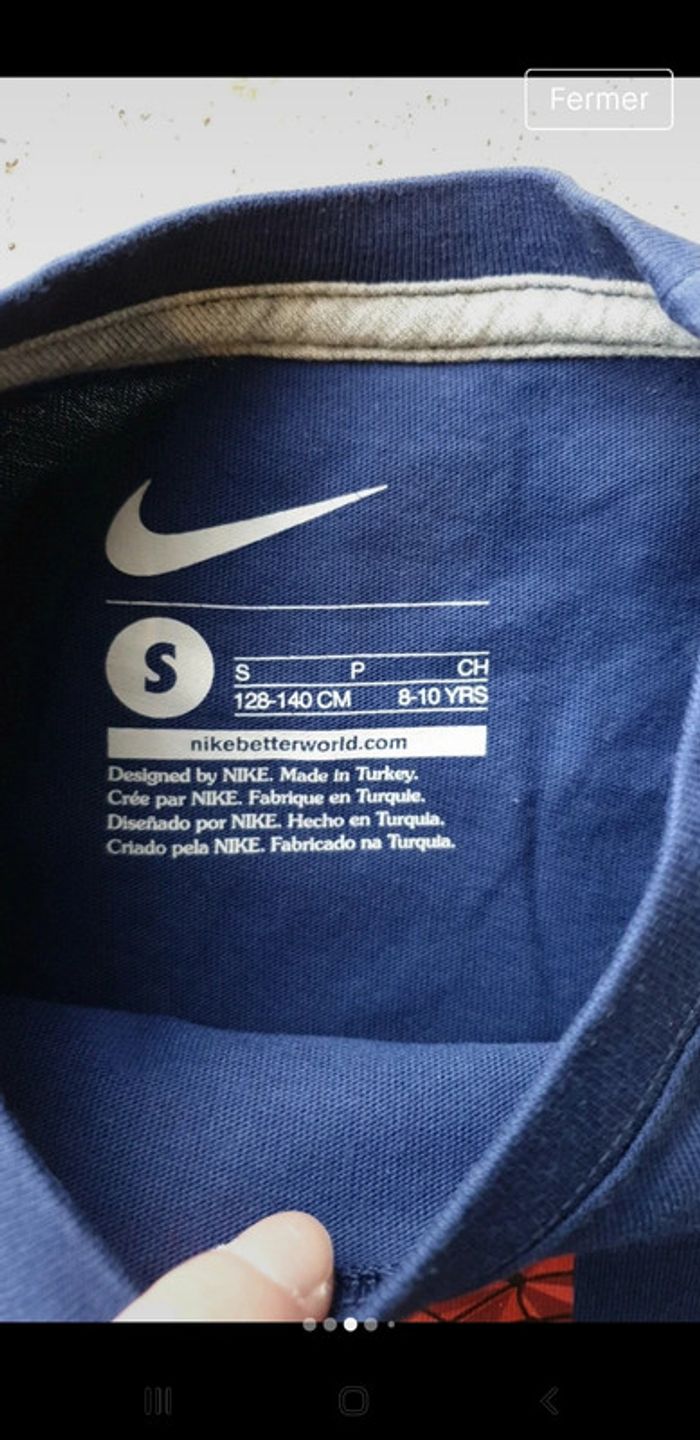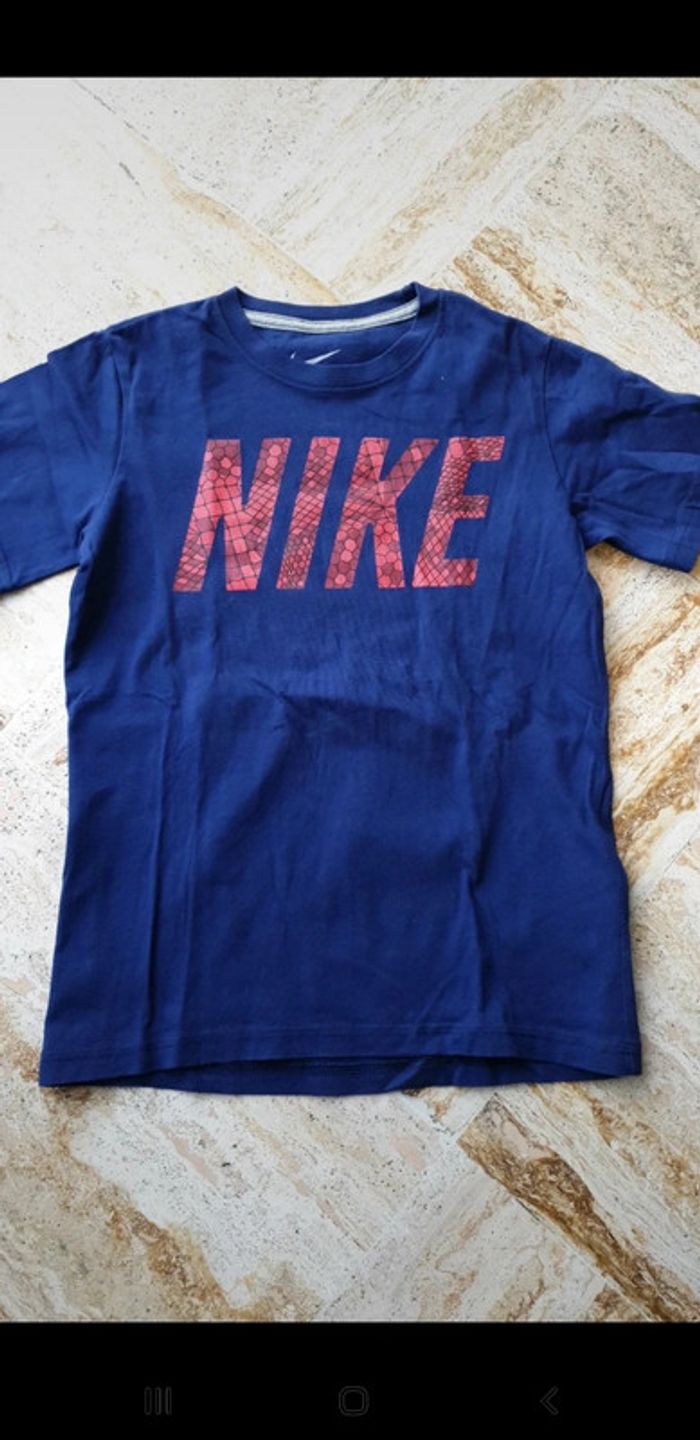 T-shirt bleu marine Nike. Taille 8-10 ans. Une petite tache noire au centre du dos (voir photo) mais ne gene en rien, elle mesure a peine 1 cm. Aucun trou. #eve.08_vetement_garcon_8ans
