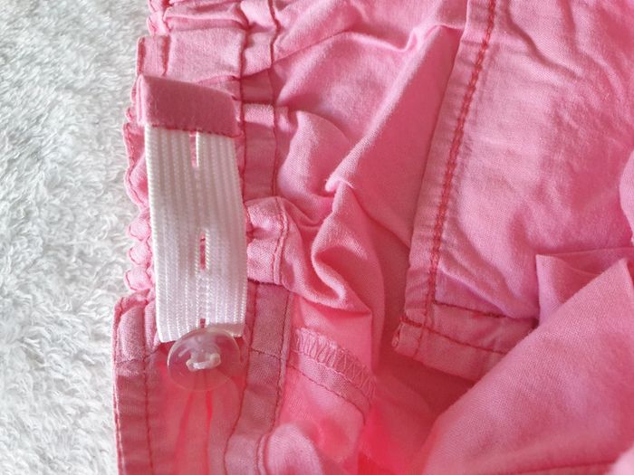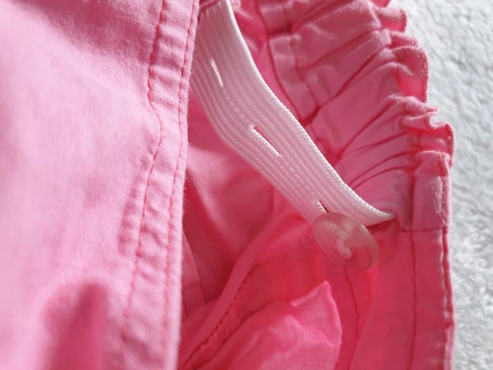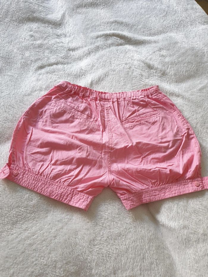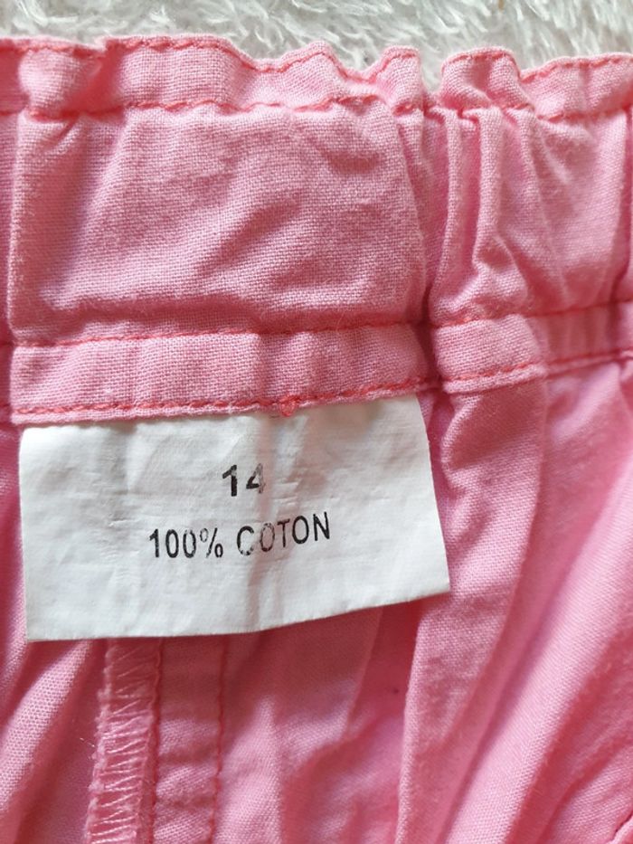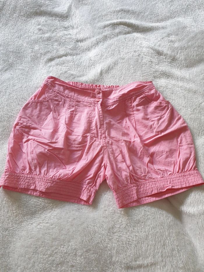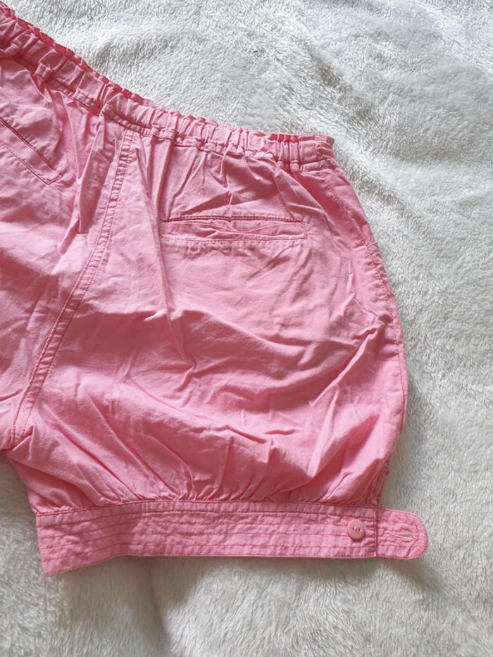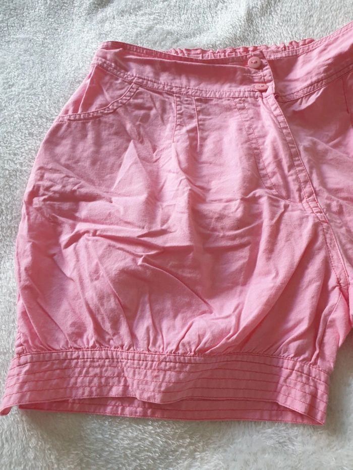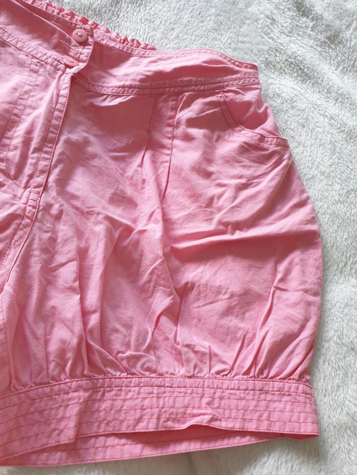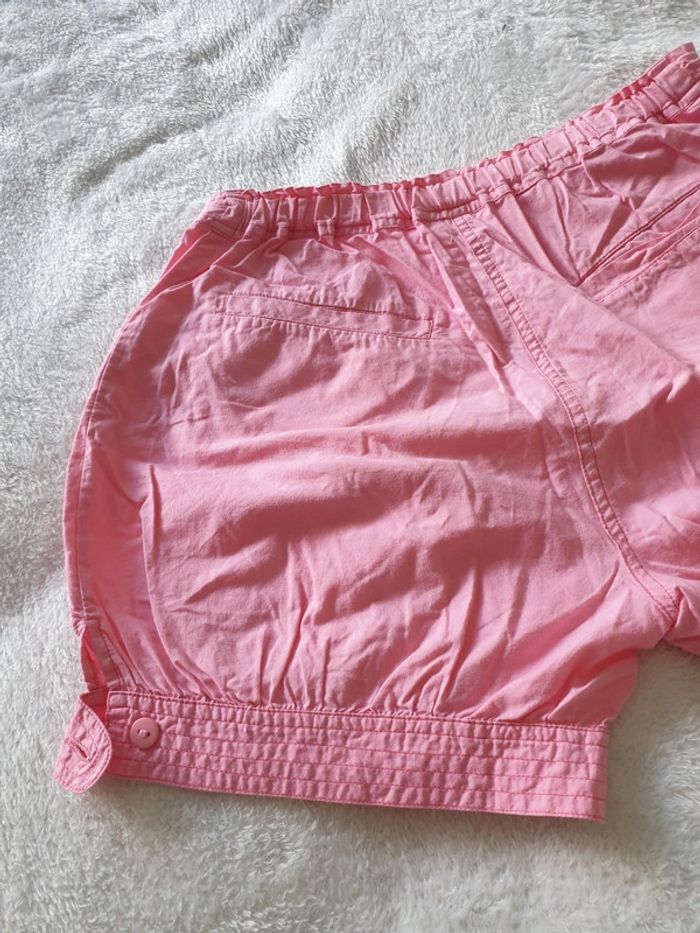 Short boule 14 ans. Rose. Boutons et fermeture éclair. 4 poches et boutons sur le côté des cuisses. Réglages avec élastiques à la taille. #eve.08_vetement_fille_14ans