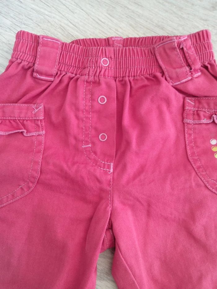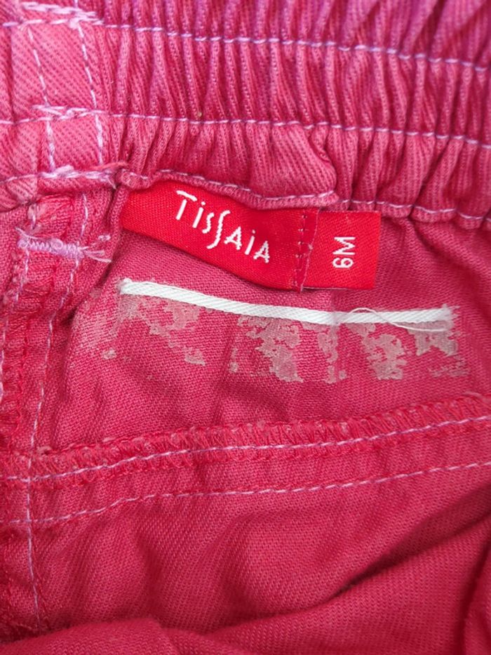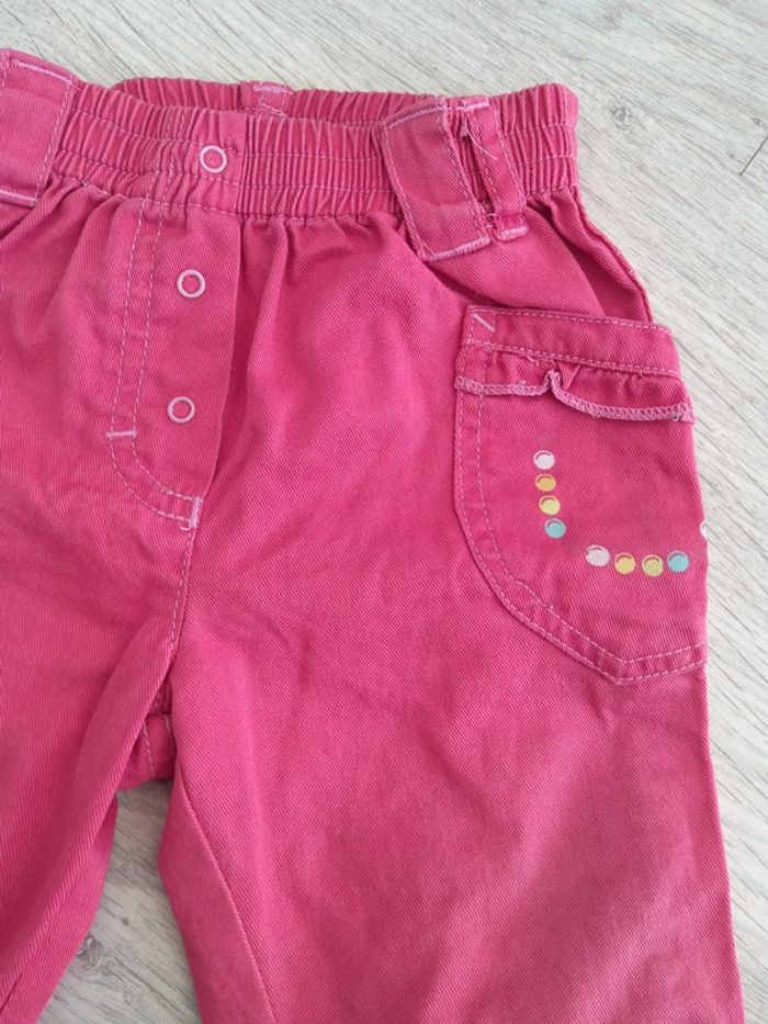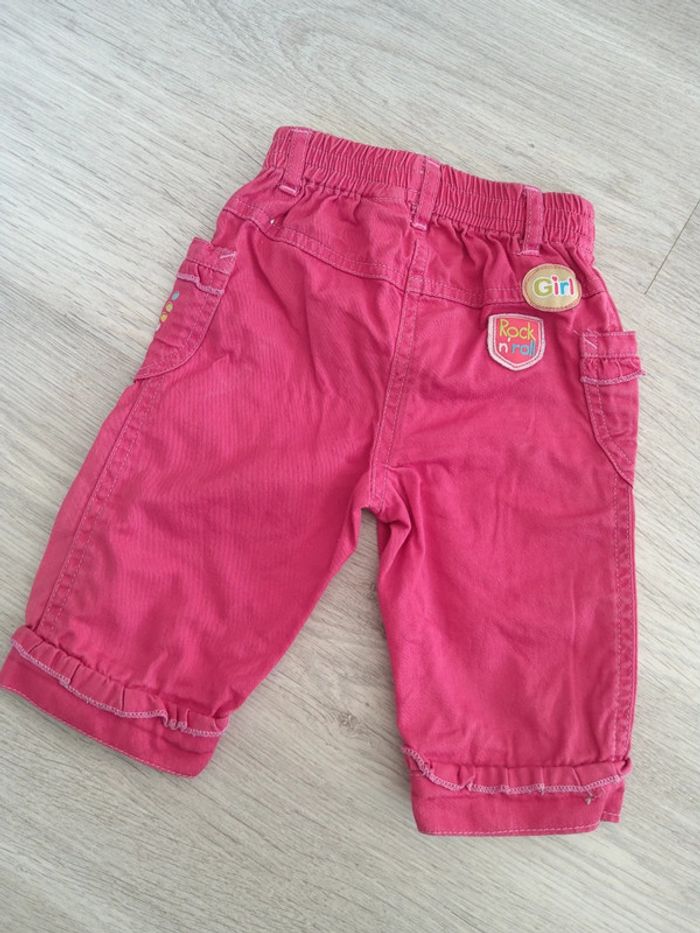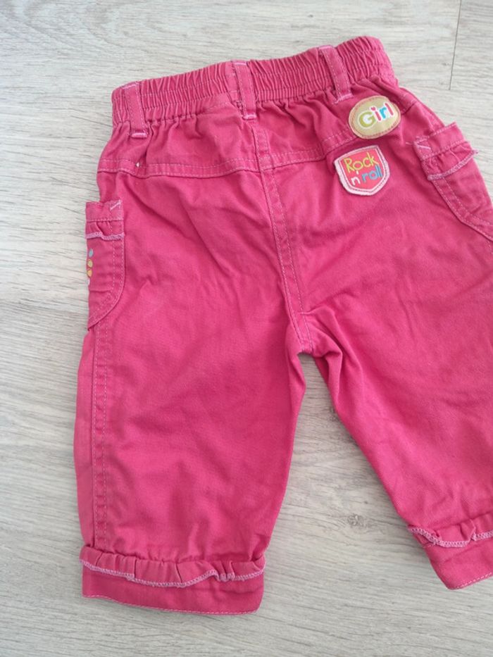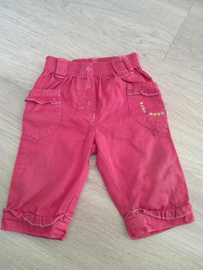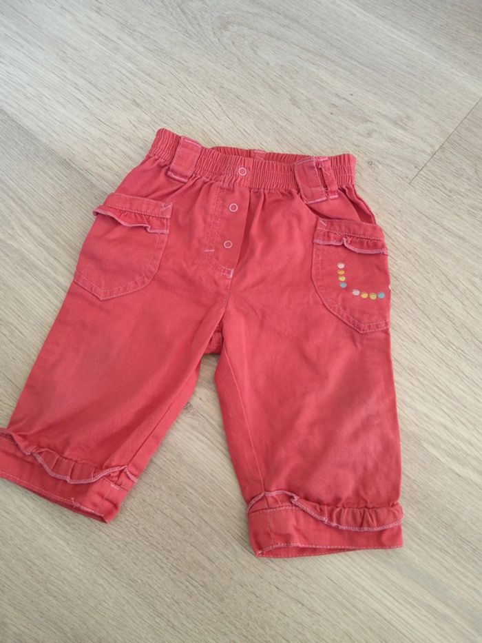 Pantalon fille 6 mois. Avec poches. Rouge. Trace de colle de l’étiquette à l’intérieur du pantalon ( voir dernière photo) #eve.08_vetements_fille_6mois