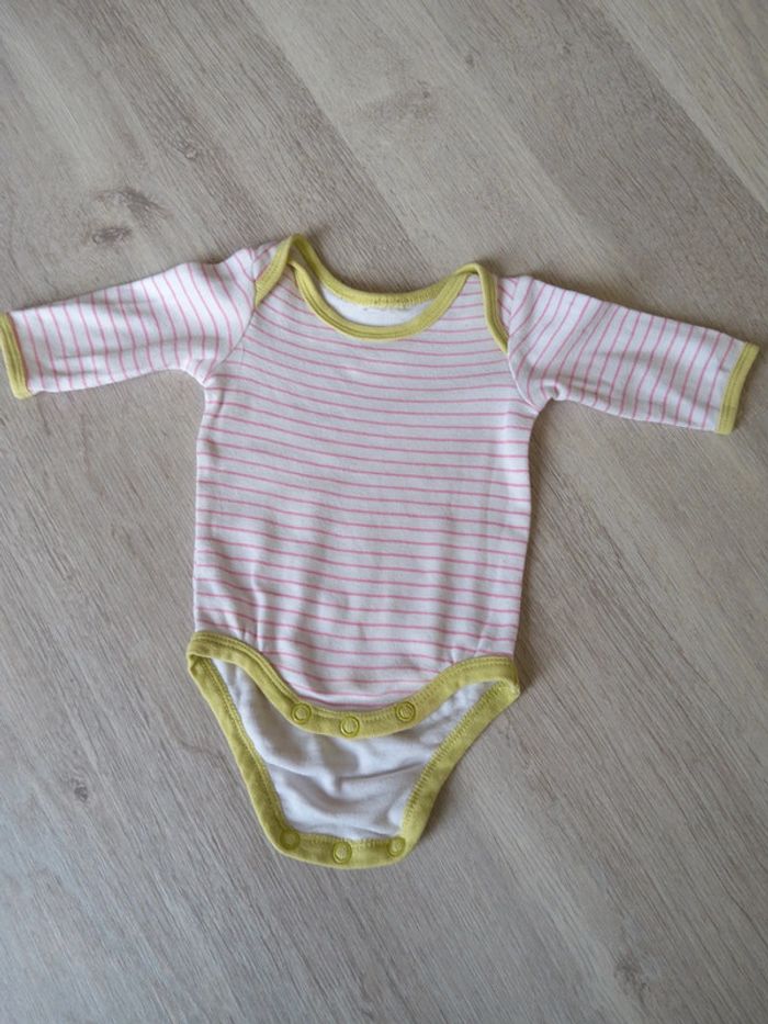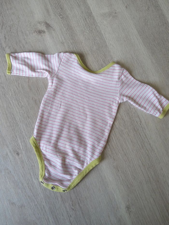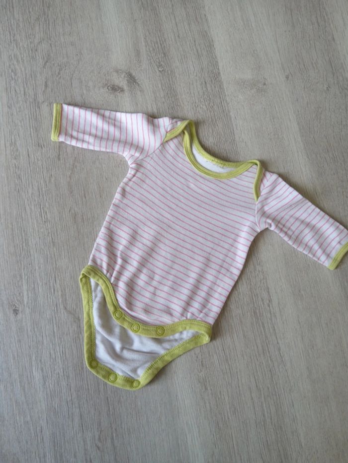 Bodie 1 mois. Bord vert et lignes roses. #eve.08_vetements_fille_1mois