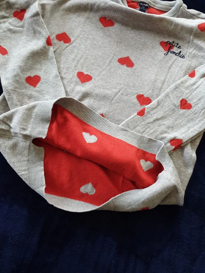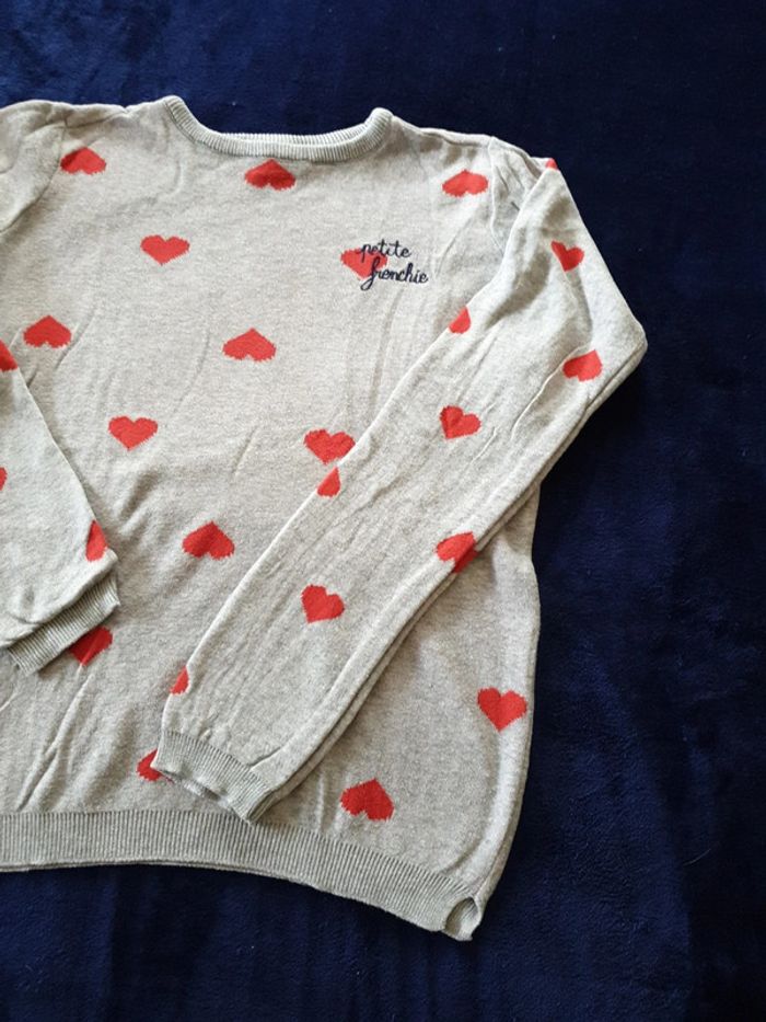 Pull fille 12 ans. A cœurs rouge. Parfait état. Comme neuf car porté 1 seule fois. #eve.08_vetement_fille_12ans