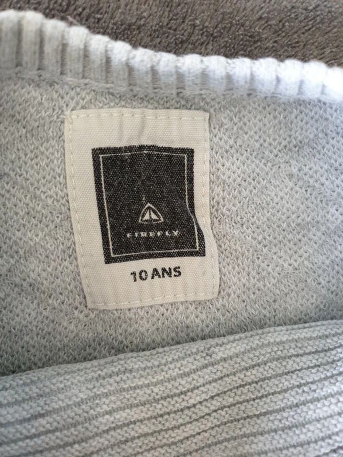 Sweat shirt fille 10 ans. Gris. 100% coton. Abimé a la manche gauche (voir photo 9) et recousu d'ou le petit prix. #eve.08_vetement_fille_10ans