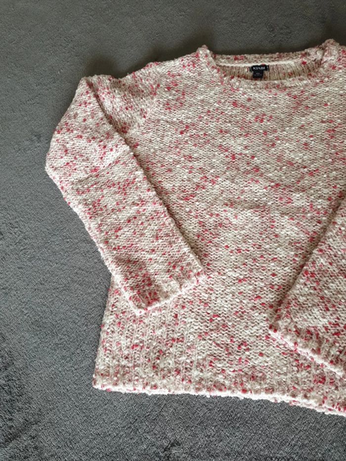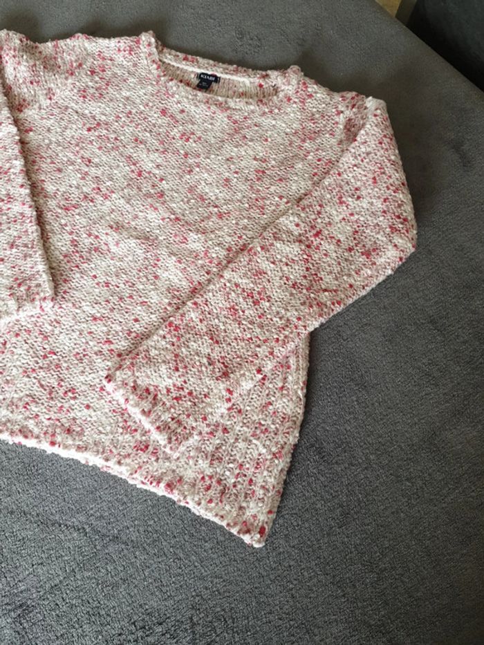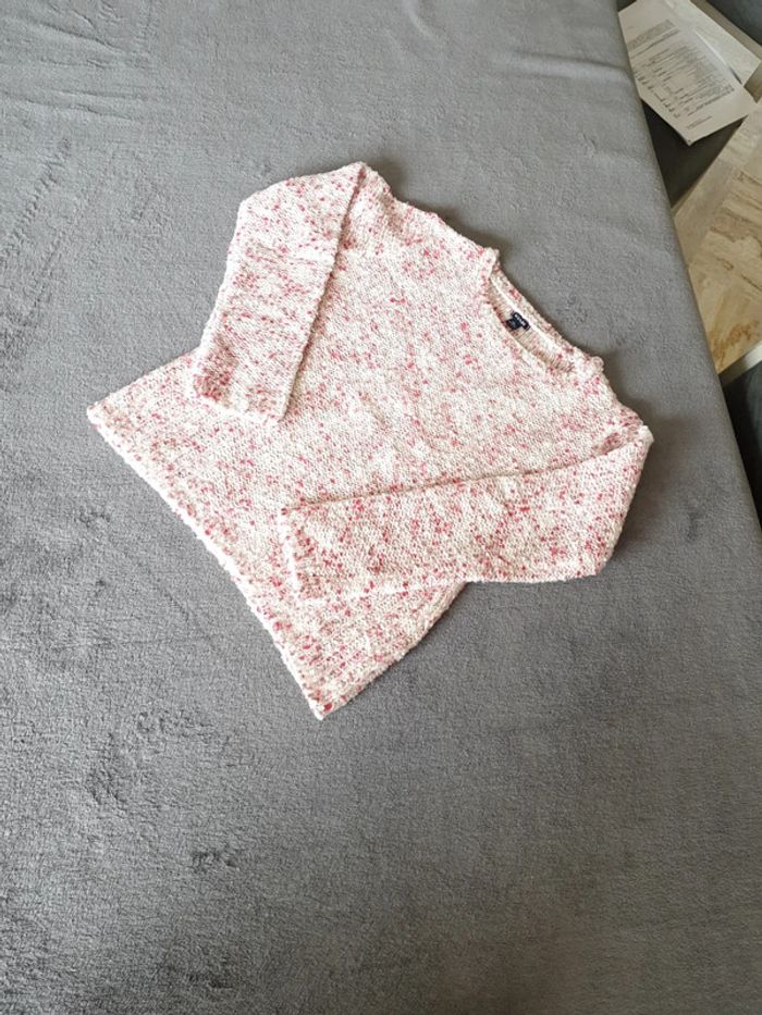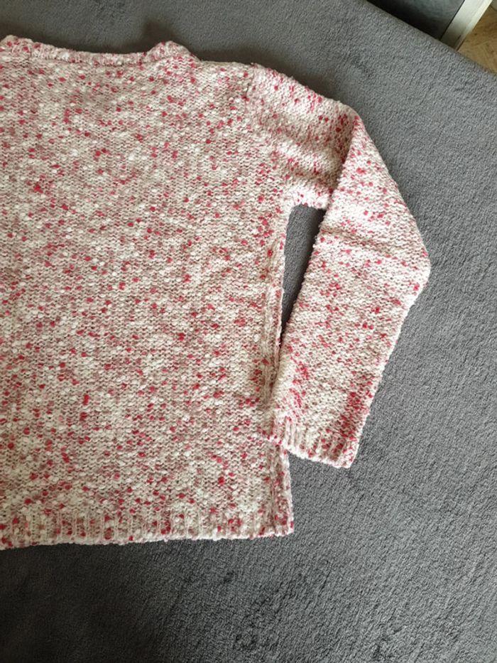 Pull fille rose, blanc avec un fils rose brillant. 10 ans. Tres bon état. #eve.08_vetement_fille_10ans