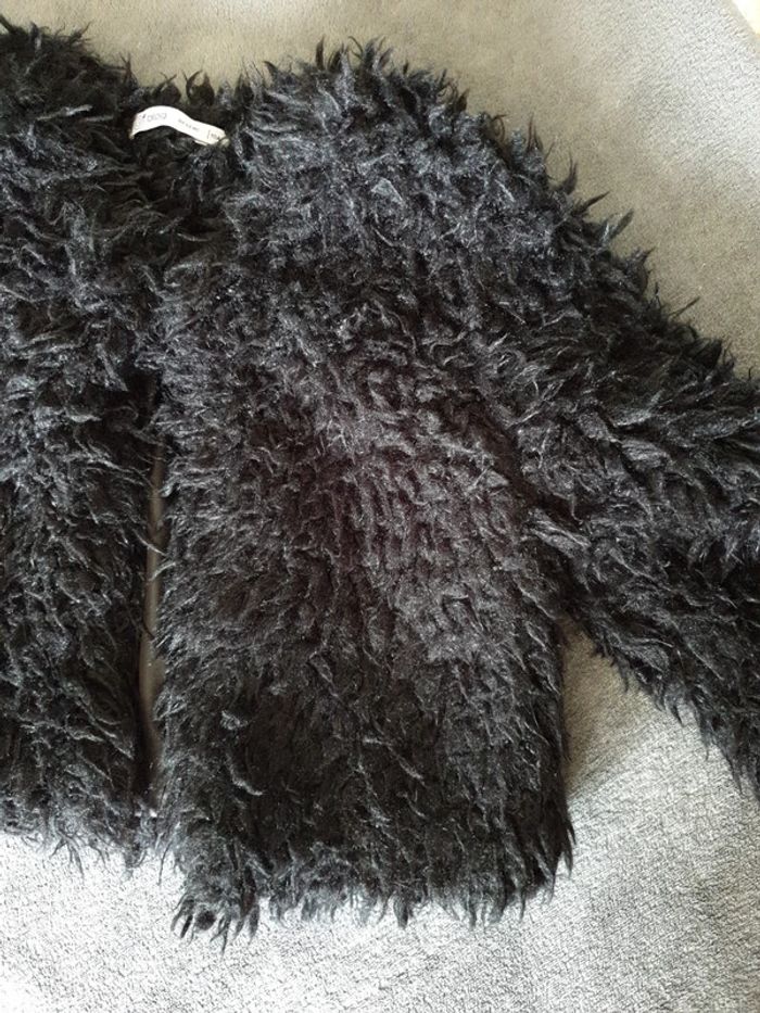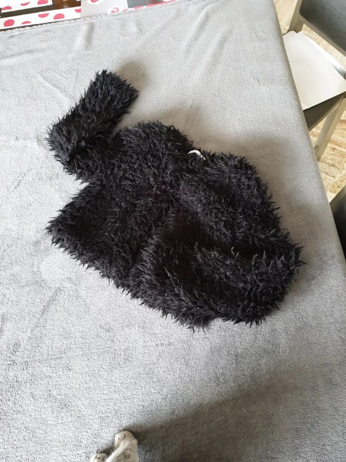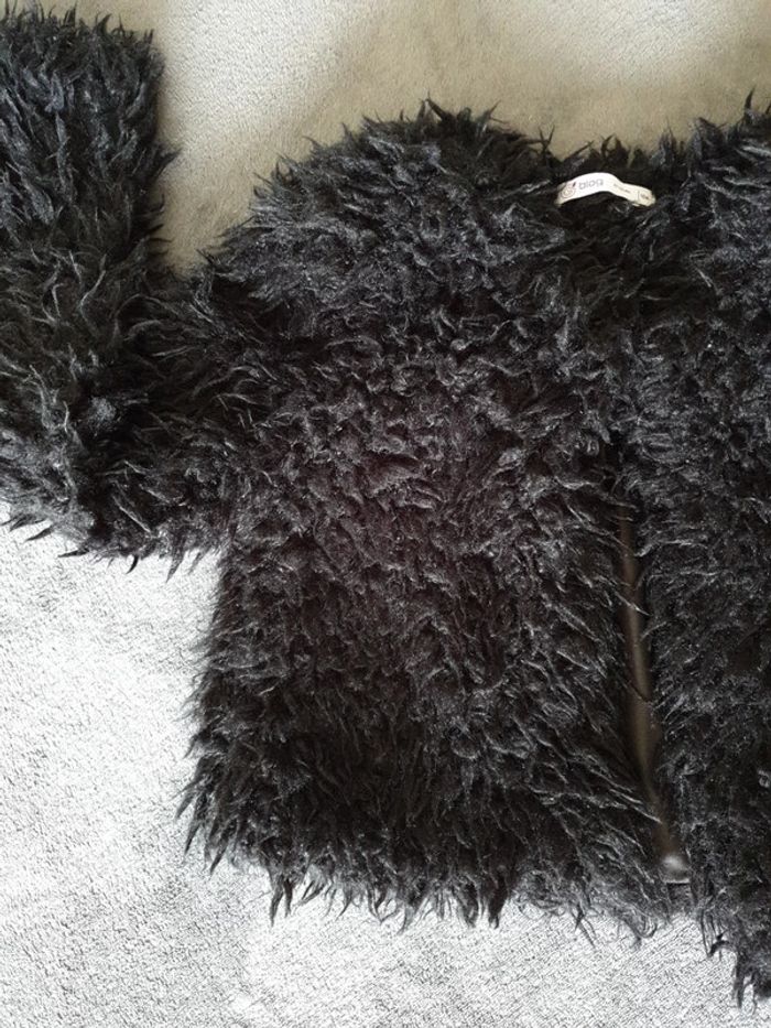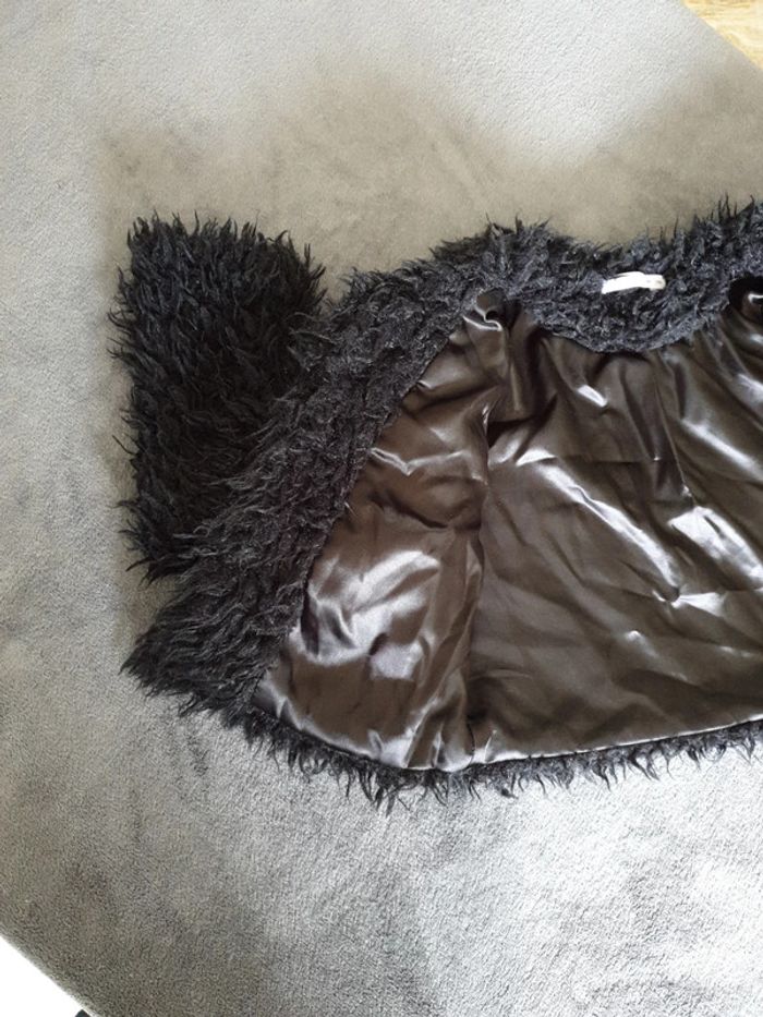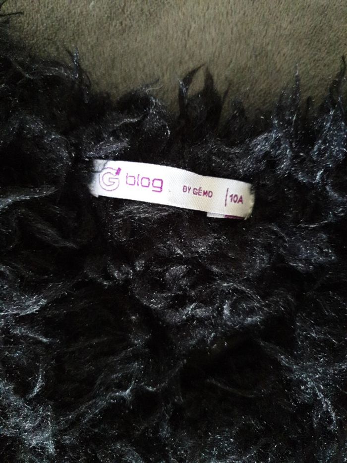 Veste ou gilet noir avec de longs poils doux. Assez epais. Effet un peu brillant. Tres bon état. 10 ans. #eve.08_vetement_fille_10ans
