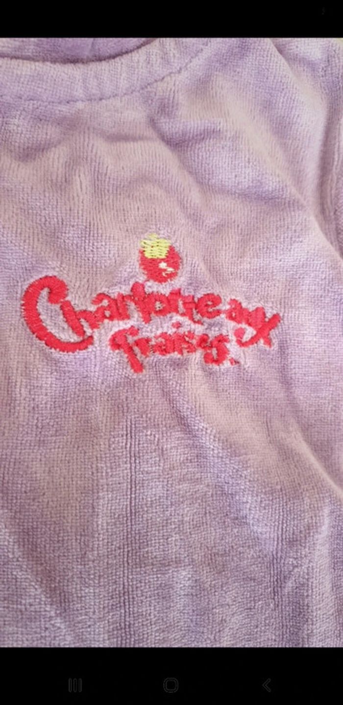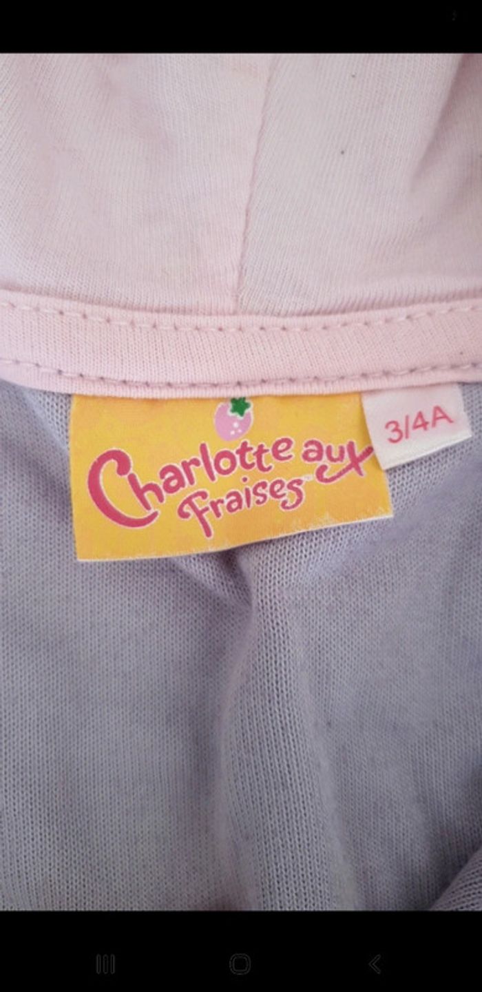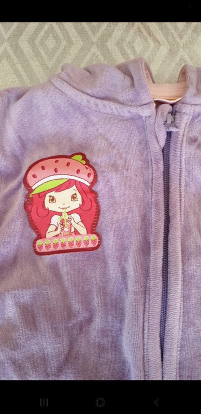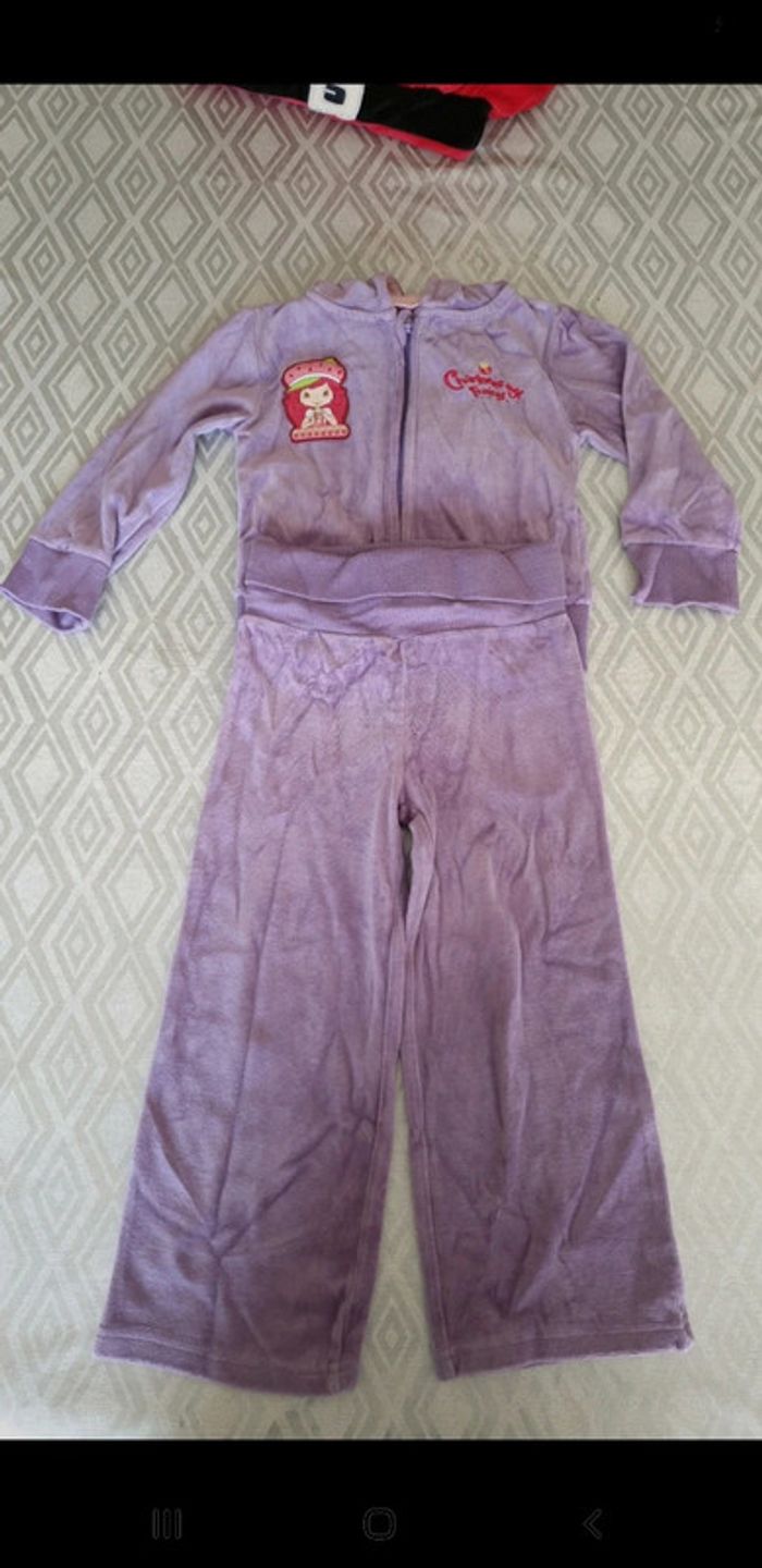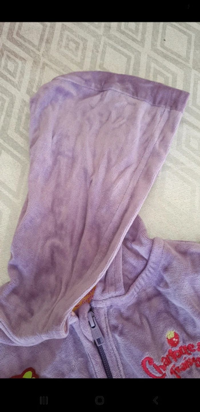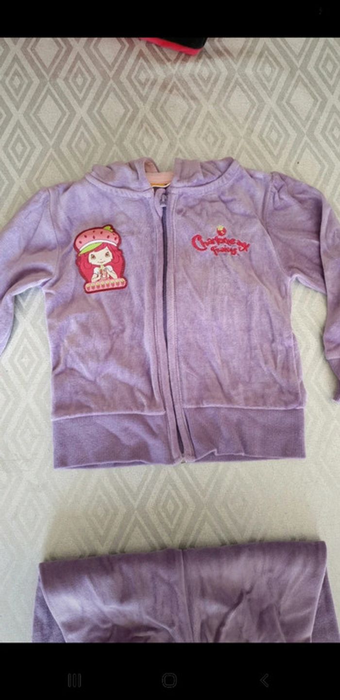 Jogging ou ensemble 2 pièces Charlotte aux fraises. 3 ans. Haut avec fermeture éclair et capuche. Bas avec élastique à la taille. Couleur mauve. Très bon état. #eve.08_vetement_fille_3ans
