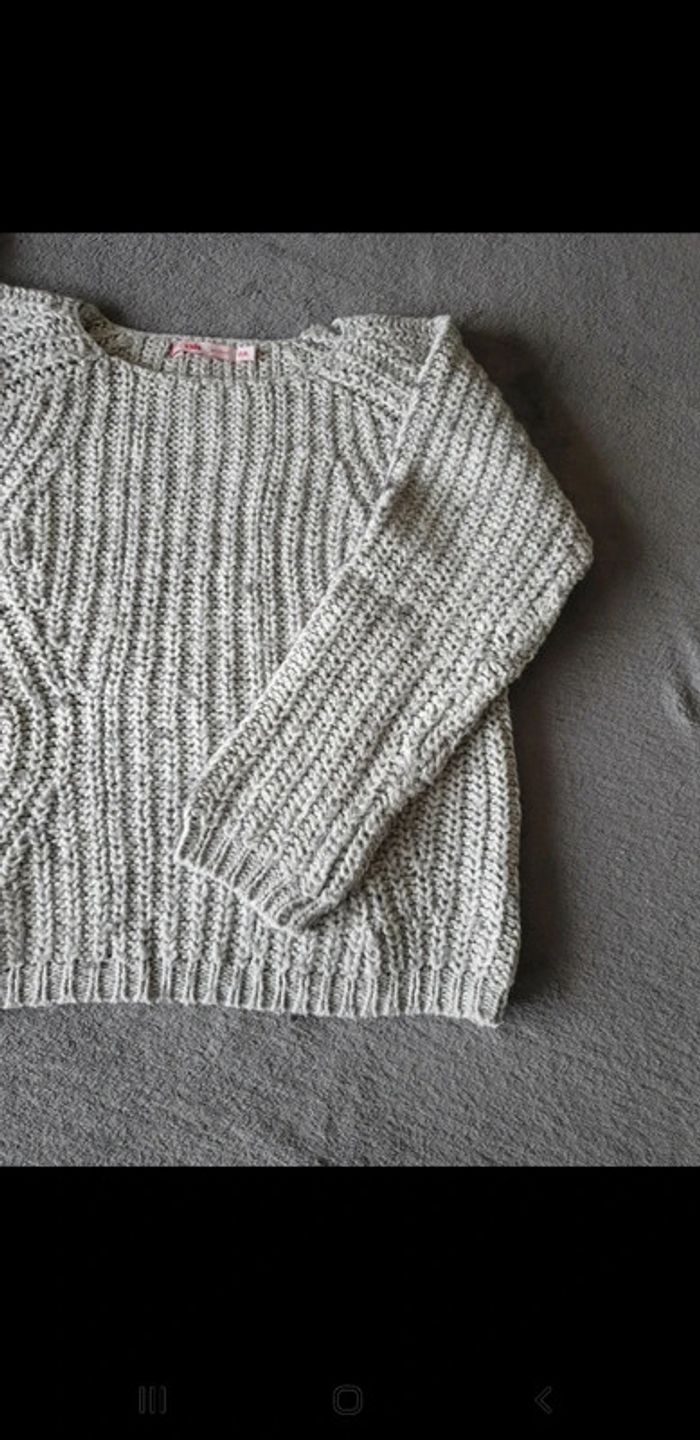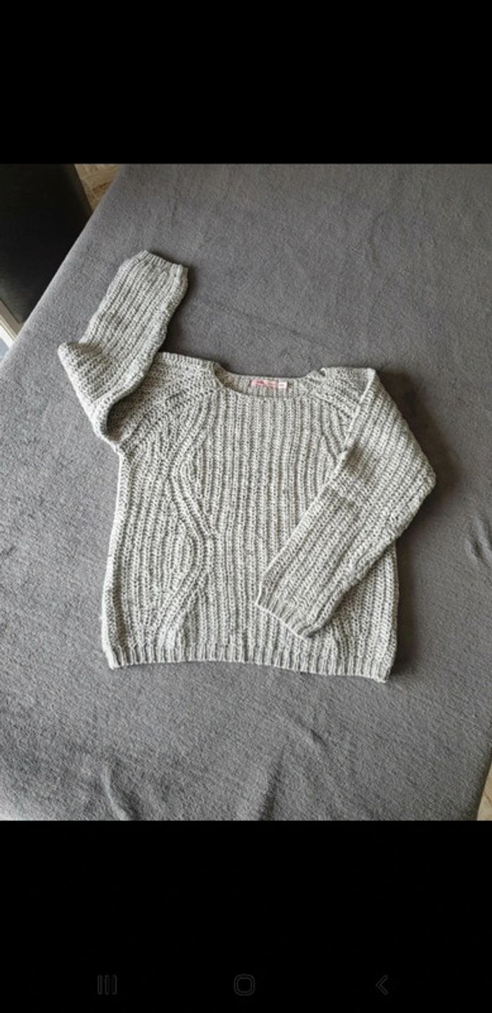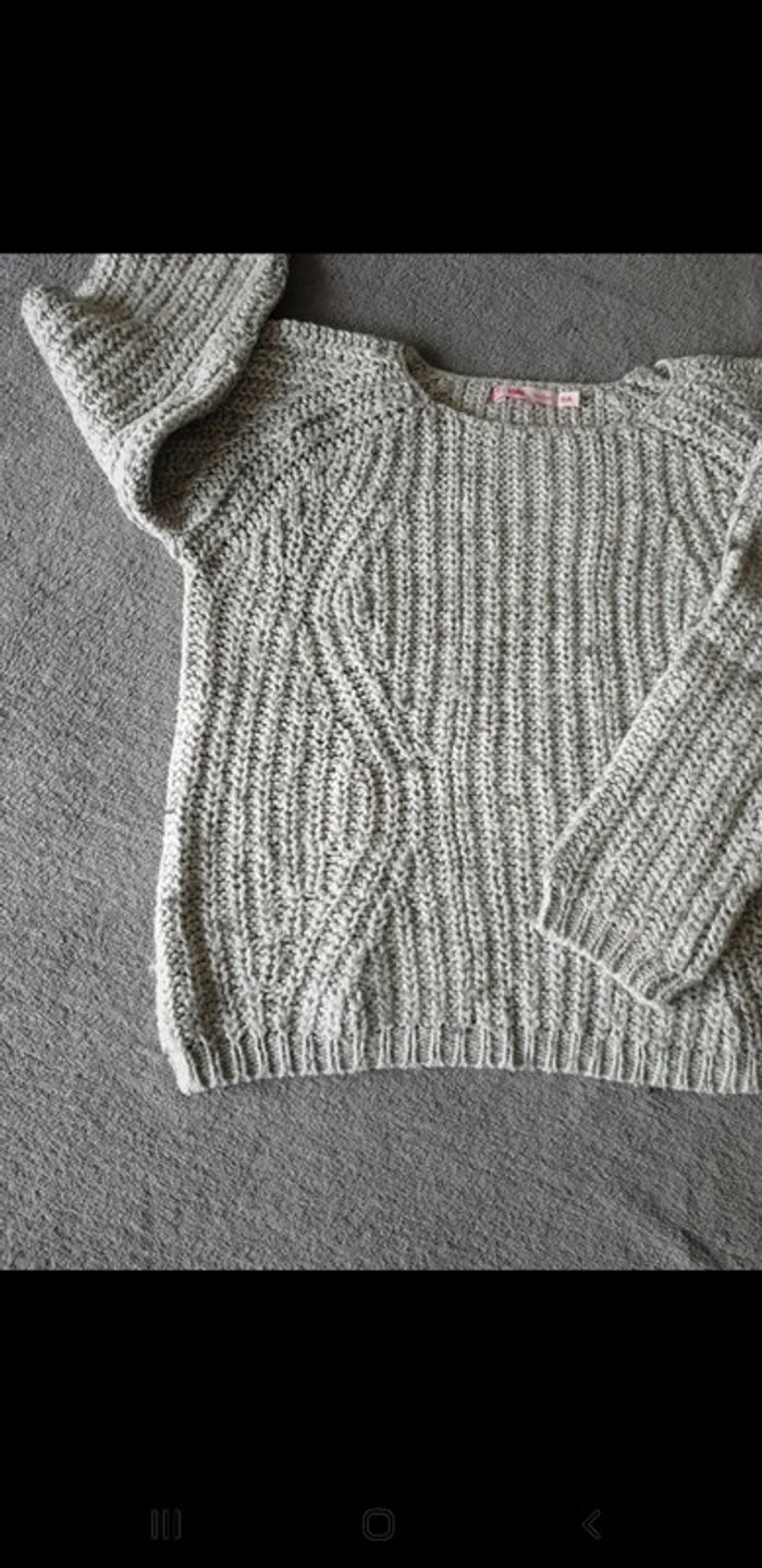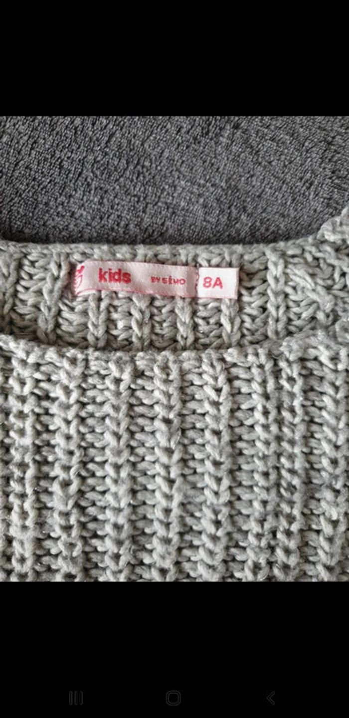 Pull fille 8 ans. Gris avec un fils argenté à l'intérieur. #eve.08_vetement_fille_8ans