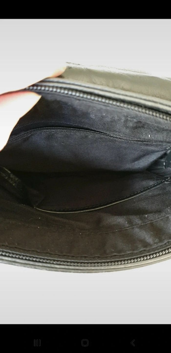 Sac a main noir avec un dessin façon cuire. Il est bon état. Il possède plusieurs poches. Il mesure environ 24cm par 26cm de haut. #eve.08_sacamain