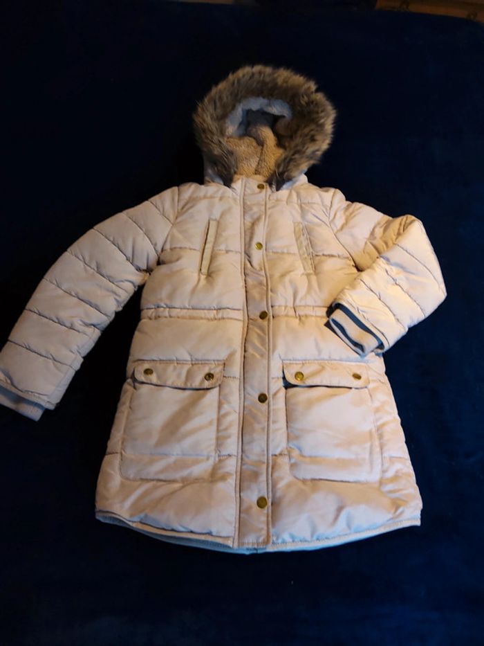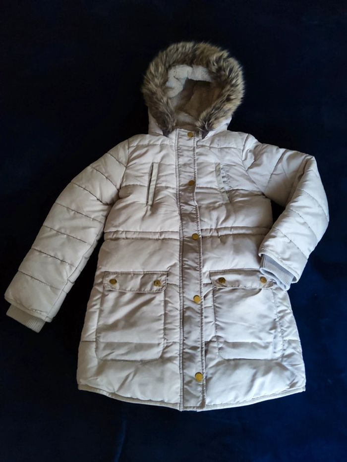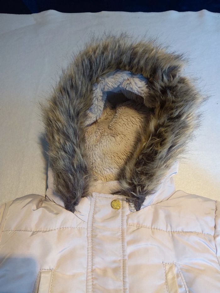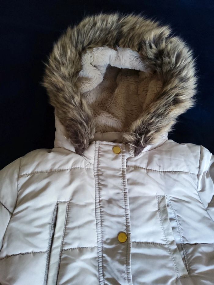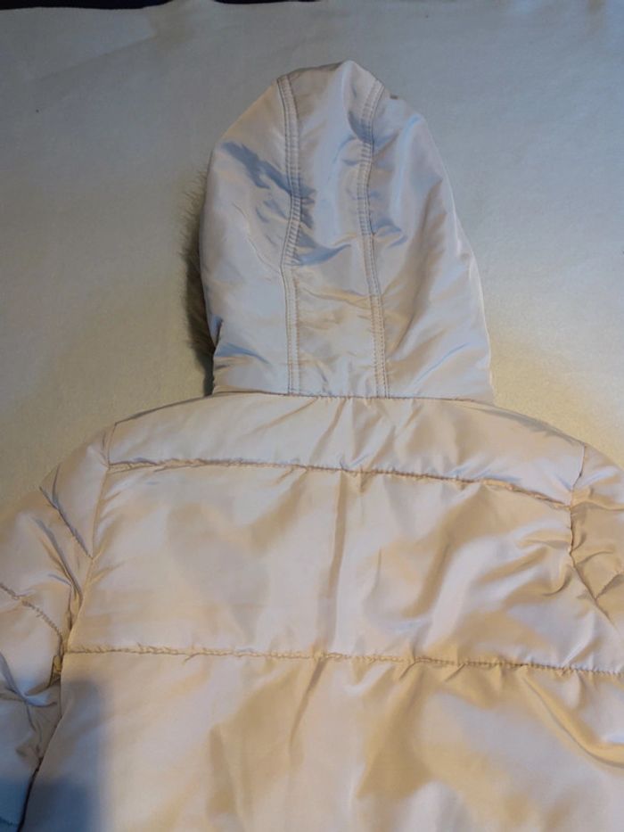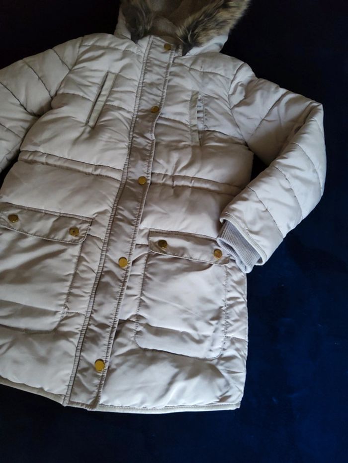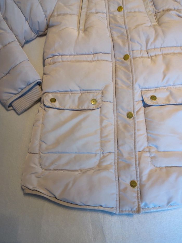Manteau, doudoune 12 ans. Couleur crème, blanc cassé. Grande poches. Capuche. Tres chaud et epais. Petites traces d'usure sur les cache boutons (voir photo).