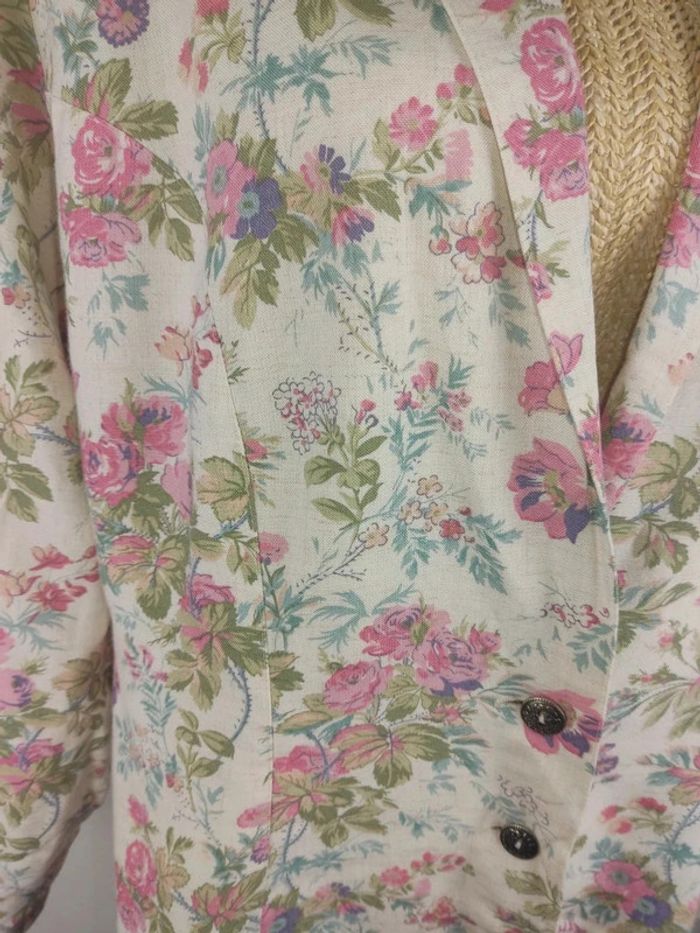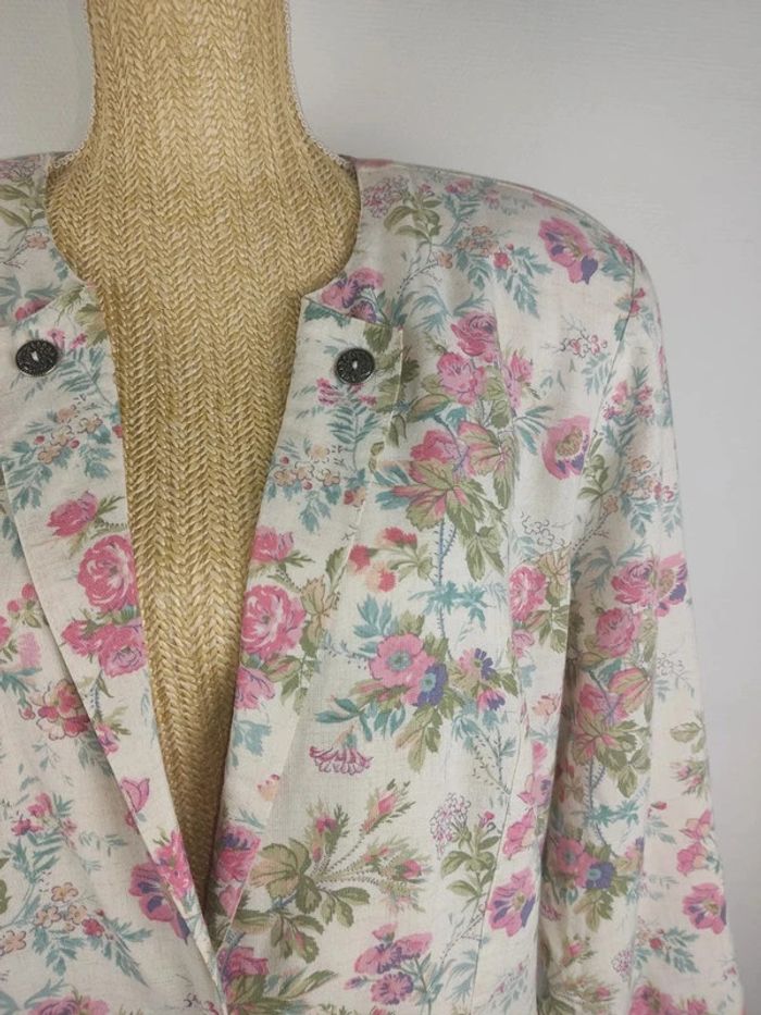 Blazer boutonné manches longues motifs fleuris pastels taille 46 vintage Yessica - photo numéro 3