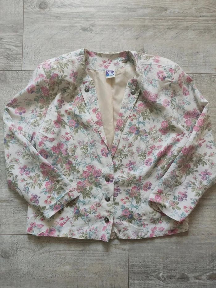 Blazer boutonné manches longues motifs fleuris pastels taille 46 vintage Yessica - photo numéro 1