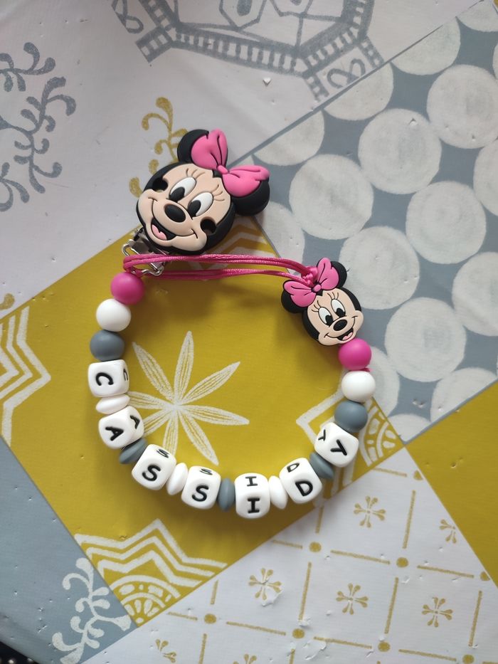 Attache tétine Minnie personnalisé en silicone et aux normes sécuritaire.mp pour plus d'informations