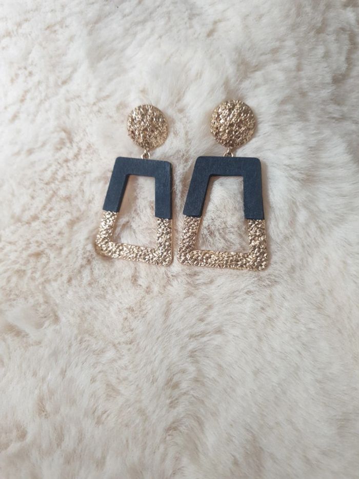 Neuf paire de boucles d'oreilles noir et doré - photo numéro 1
