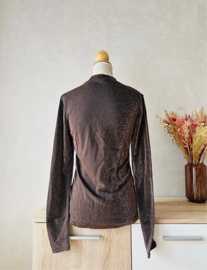 ❥ Sous pull à pailette col cheminée ❥ Mango ❥ Taille L / 40 ❥ Neuf, jamais mis ❥ Marrons à paillettes rose gold ❥ Composition : 13% polyester • 87% polyamide #souspull #mango #tailleL #taille40 #neuve #neuf
