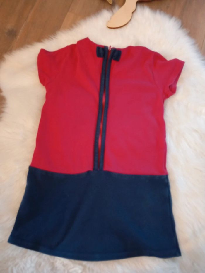 Petite robe idéal rentrée scolaire bicolore marine et rose rouge avec joli coeur et col claudine sur le devant Parfaite aussi pour une cérémonie mariage baptême communion anniversaire #dpam #izianaquatreans #dupareilaumeme