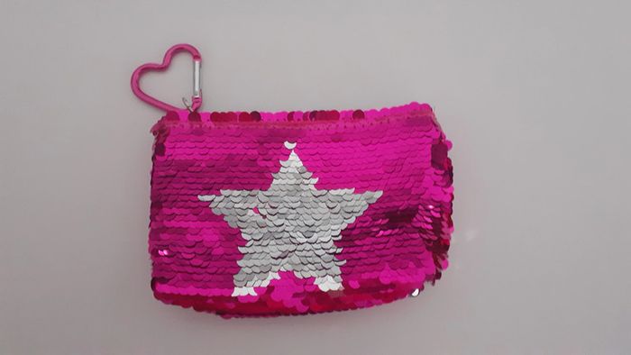 Joli porte-monnaie neuf à sequins rose et argenté avec mousqueton #jenni1428_fille_accessoires
