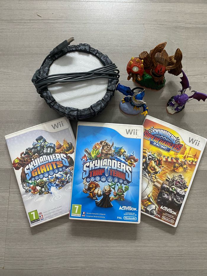 Je vends ma collection de jeux Skylanders pour la console Wii. Cela inclut les trois jeux de la série : Skylanders Giants, Skylanders Swap Force et Skylanders Trap Team. Les jeux sont en excellent état et fonctionnent parfaitement. Avec les jeux, je fournis également plusieurs figurines Skylanders en très bon état. Il y a des personnages de différentes séries, comme les Giants, les Swap Force et les Trap Masters. Certaines figurines sont rares et recherchées par les collectionneurs. Ce lot Skylanders Wii est idéal pour les fans de la franchise ou pour ceux qui souhaitent découvrir cette expérience de jeu unique. N'hésitez pas à me contacter si vous avez des questions ! - Jeux Skylanders Giants, Swap Force et Trap Team pour Wii - Plusieurs figurines Skylanders en excellent état - Jeux et figurines fonctionnent parfaitement - Idéal pour les fans de la franchise ou les nouveaux joueurs
