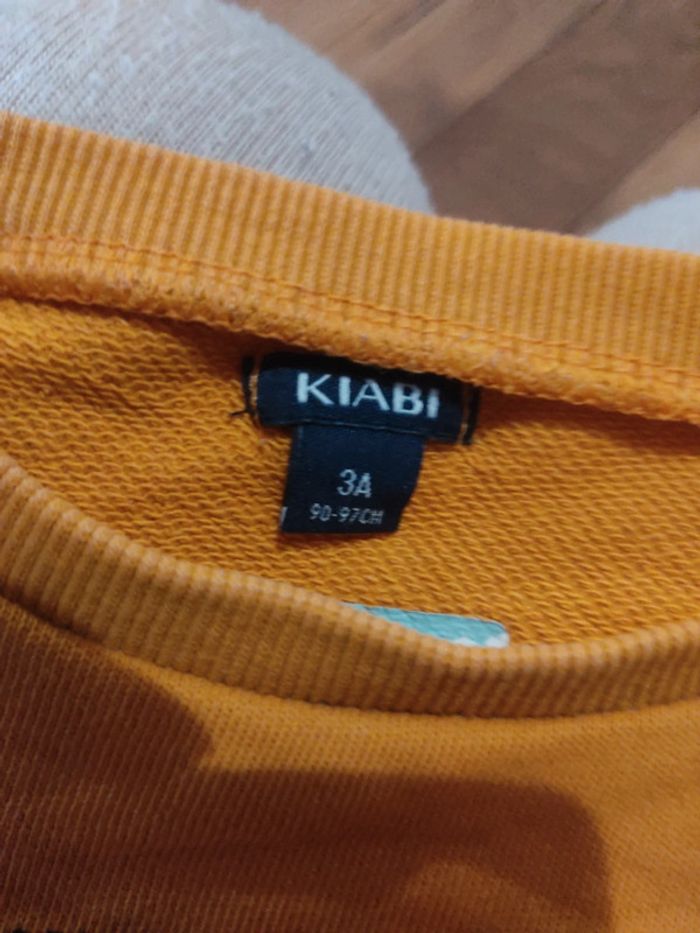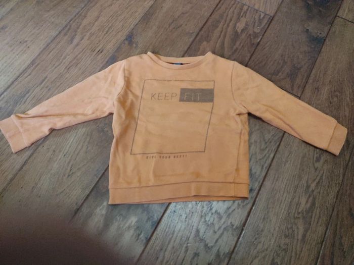 Sweat fin orange Taille 3 ans Attention petit trou sous le bras. Très bon état. #mathigelgarçon3ans