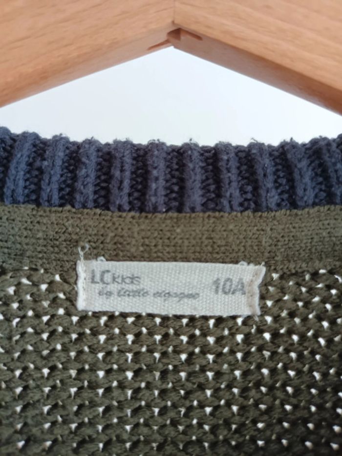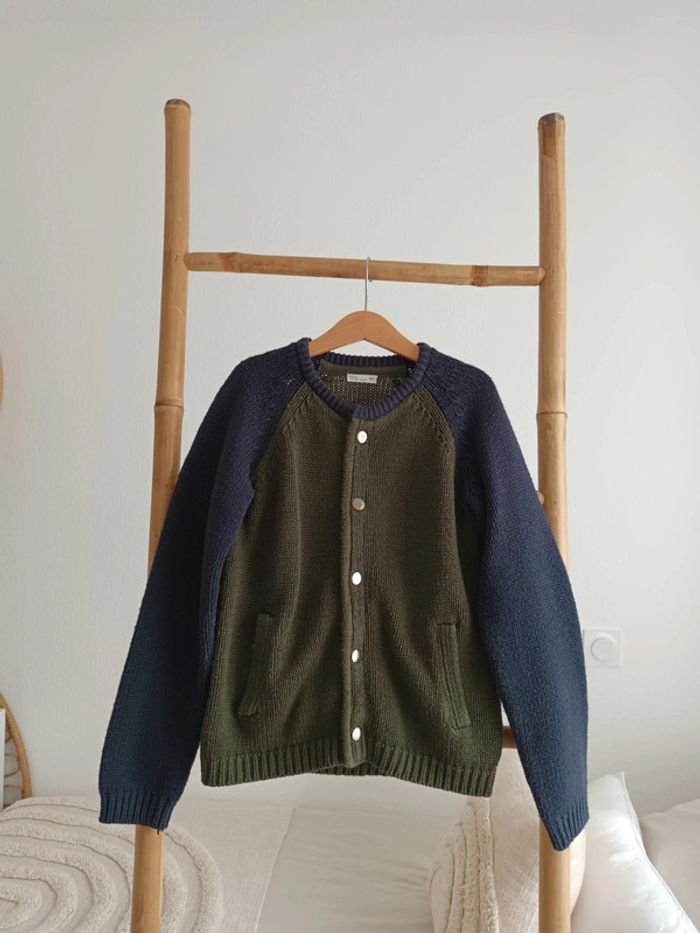 Gilet cardigan boutons pression kaki & marine Little Cigogne 10 ans #kamilyam10ansgarçon