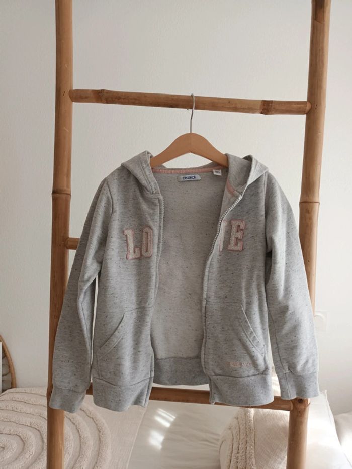 Gilet à capuche gris Okaïdi 8 ans #kamilyam8ansfille Fermeture éclair cassée sinon en bon état