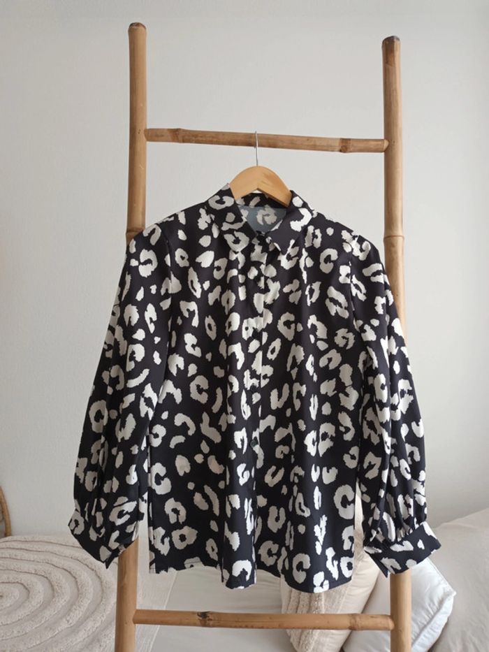 Blouse chemise noire à motifs Léopard taille M - photo numéro 1