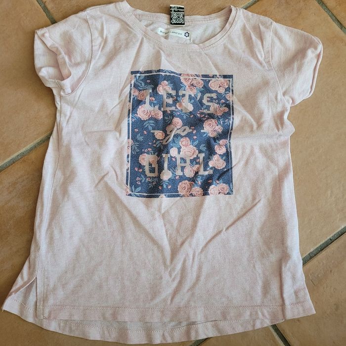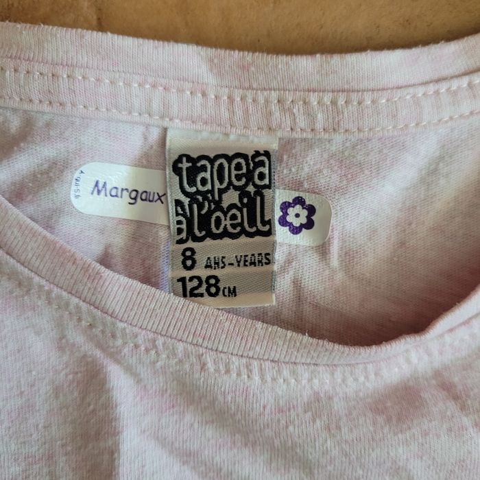 Tee-shirt TAO 8 ans rose chiné motif fleuri à l avant. Très bon état. Envoi dans la journée en mondial relay ou chronoshop2shop.