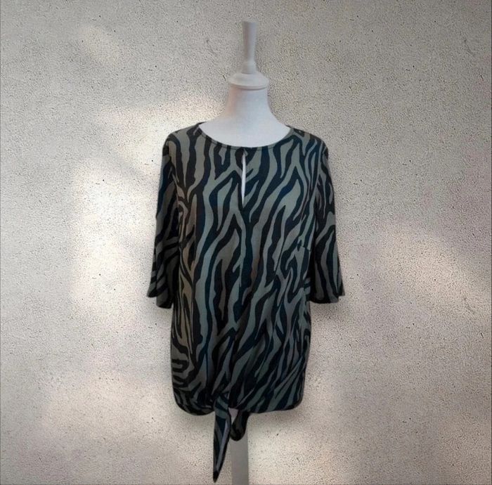 Blouse fluide manches courtes à motifs à nouer taille 42-44 - photo numéro 1