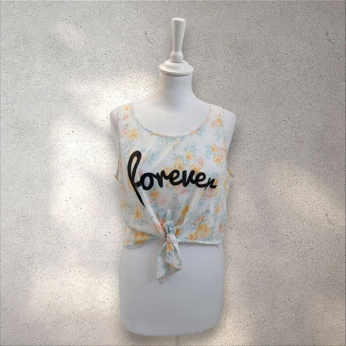 Top court sans manche débardeur fleurs à nouer taille M - photo numéro 1