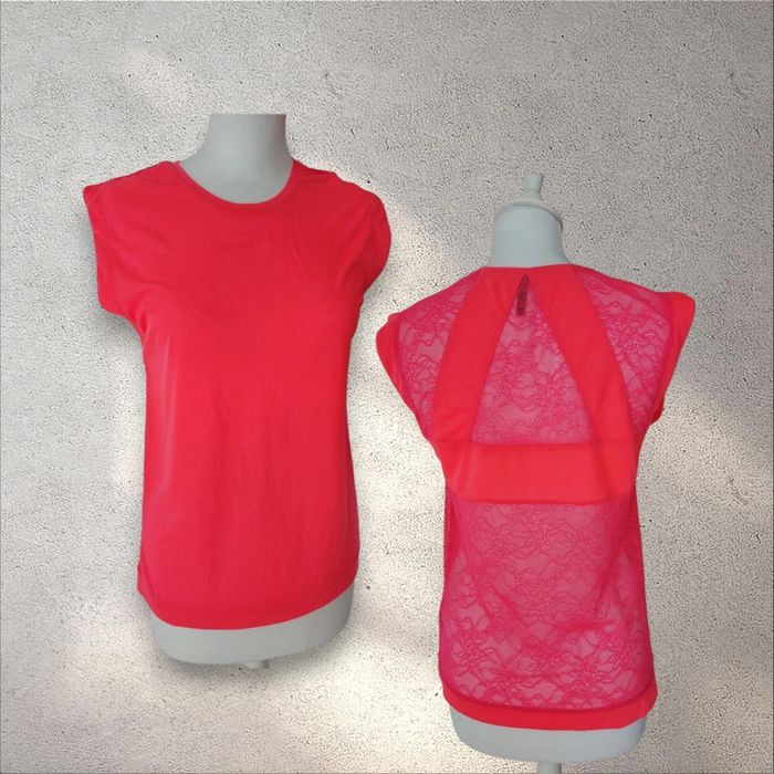T-shirt sans manche rose fushia dos en dentelle taille S
