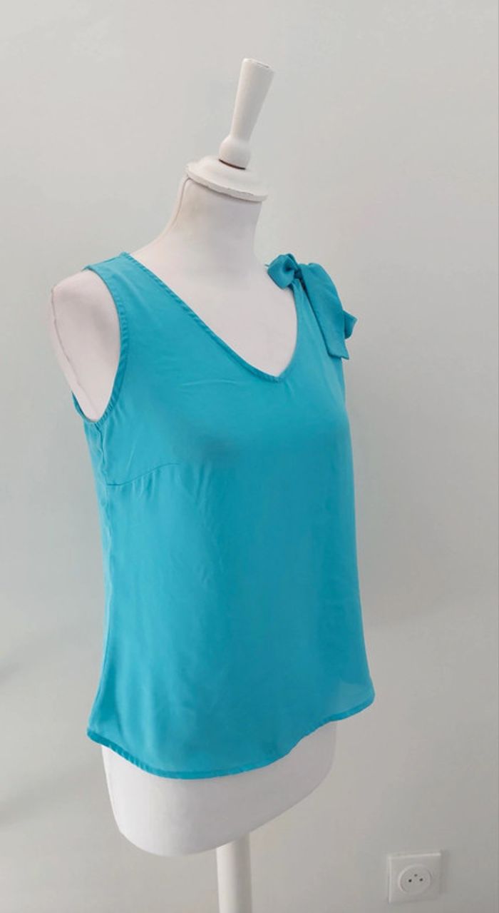 Blouse fluide sans manche bleu clair Morgan taille 38 - photo numéro 4
