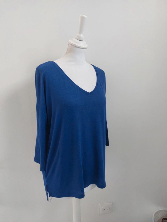 Pull col v léger oversize bleu 38-40 - photo numéro 1