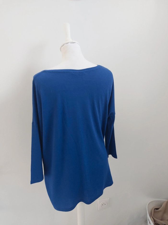 Pull col v léger oversize bleu 38-40 - photo numéro 3