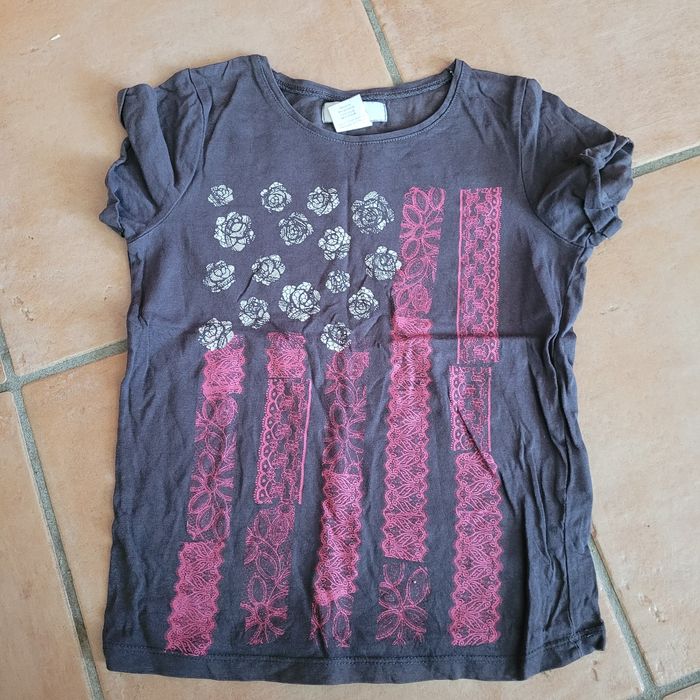 Tee-shirt La Redoute 8 ans violet grisé motif drapeau américain floral. Très bon état. Envoi dans la journée en mondial relay ou chronoshop2shop.