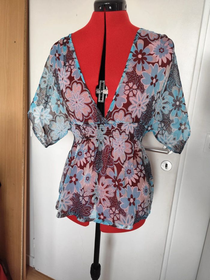 Blouse style kimono Fleurie, élastique a la taille Taille M Idéal pour printemps été