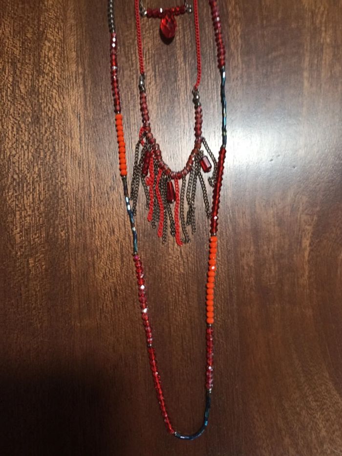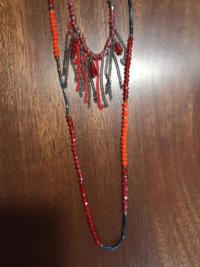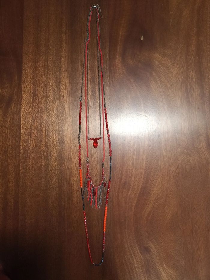 Magnifique sautoir 3 rangs rouge et noir - photo numéro 2