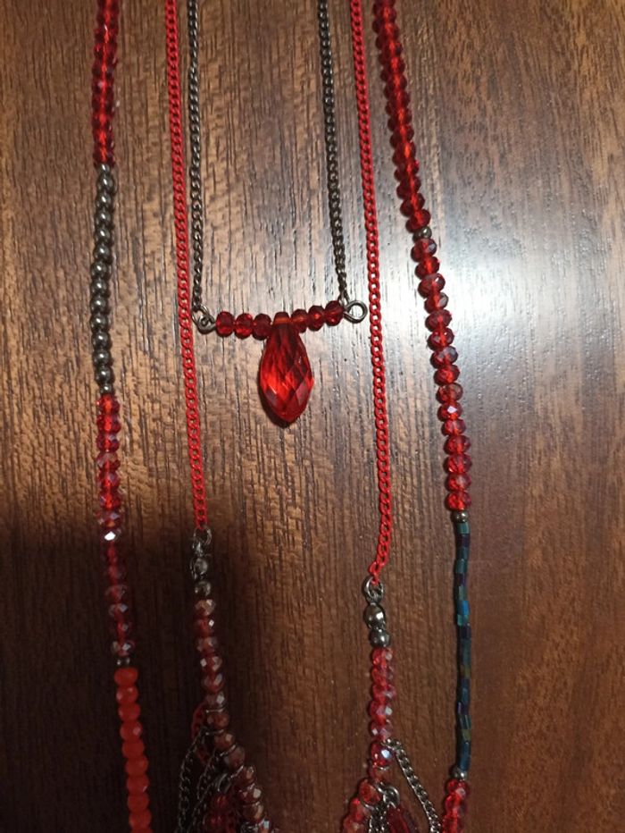 Magnifique sautoir 3 rangs rouge et noir - photo numéro 4