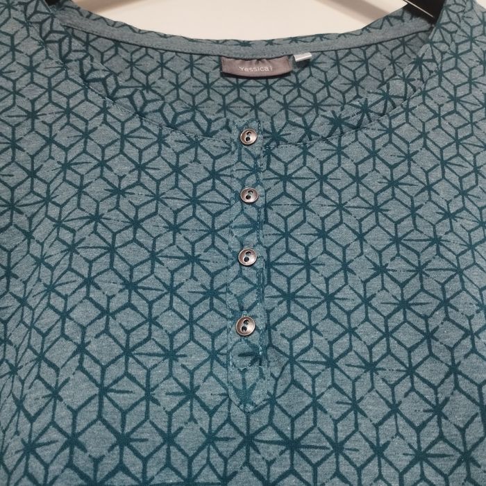 T-Shirt manches courtes, col rond avec boutonnage, taille 36/38. Aisselle à Aisselle 46cm, Longueur 63cm.