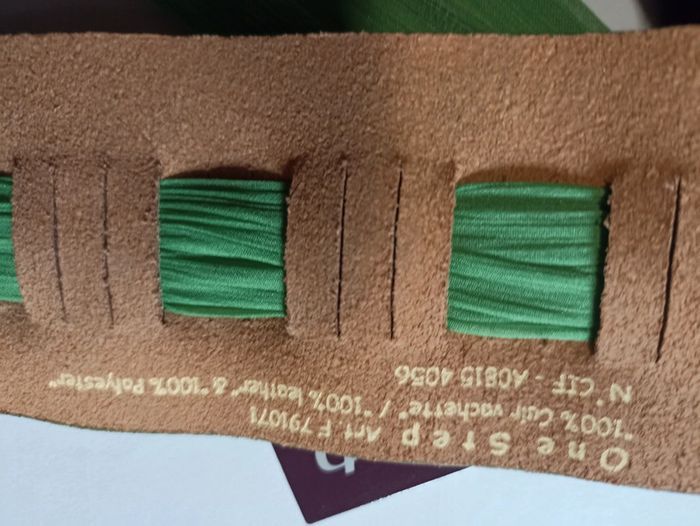 Ceinture cuir et tissu polyester Largeur partie cuir 6 cm longueur 73 cm Neuve