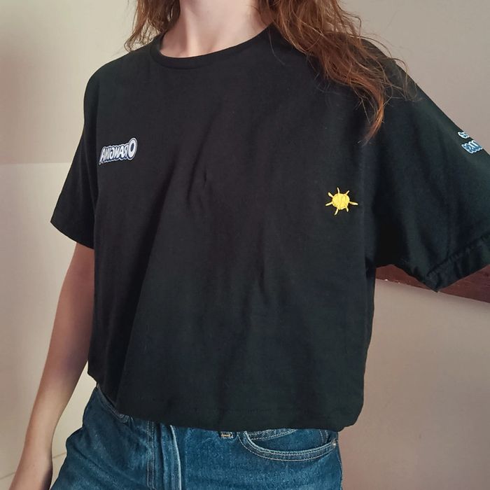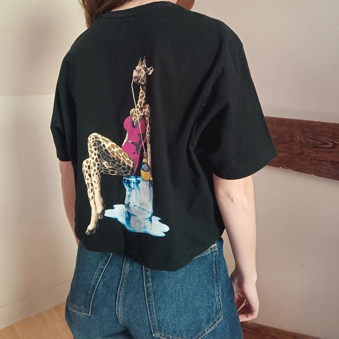 💐 Réductions sur les lots 💐 2 articles : -5% 3 & 4 articles : -10% 5 articles et plus : -15% Pas d'envoi Vinted go, merci ✨ T-shirt crop noir floqué girafe au dos et "naturellement pulpeuse" Il a été modifié : je l'ai raccourci et ai brodé un soleil pour renforcer le reprisage d'un petit trou Orangina 100% coton Très bon état Taille 40 Je le porte sur un 36 sur les photos et mesure 1m61 📏 Dimensions à plat : carrure 43cm, largeur poitrine 52cm, longueur 46cm Retrouve moi porté en vidéo sur Instagram pseudo : de_si_belles_fripes ⚠️ Étant une entreprise déclarée payant des charges, merci de respecter mon travail en ne le bradant pas 🙏🏻 #desibellesfripes40 #upcycling
