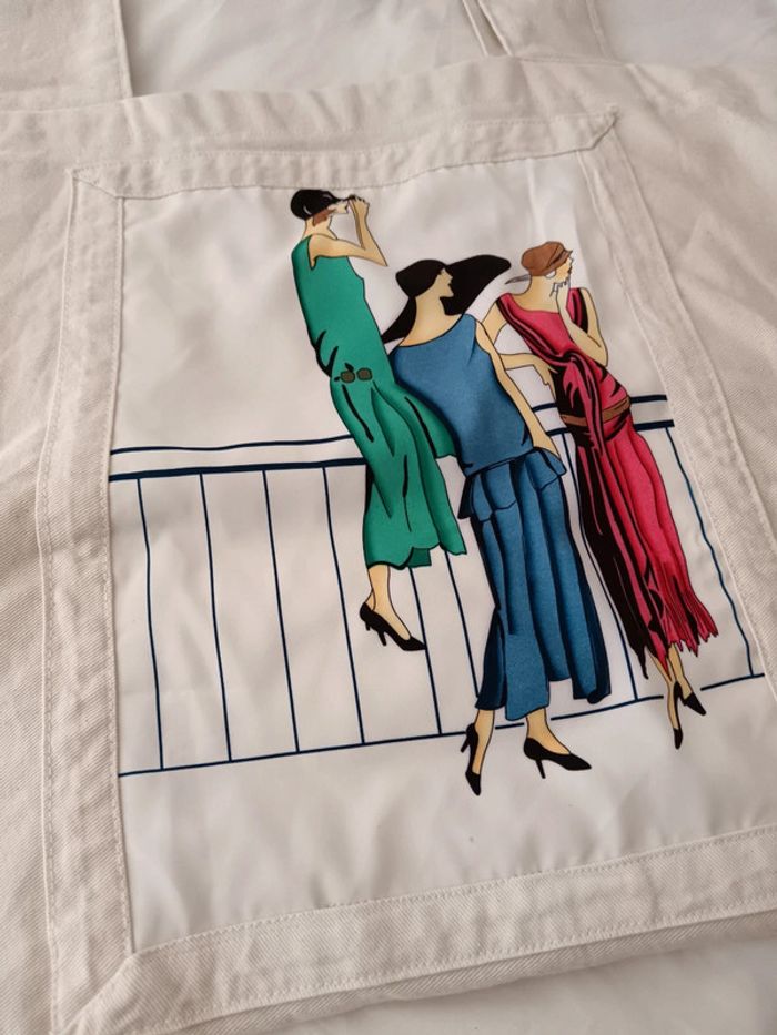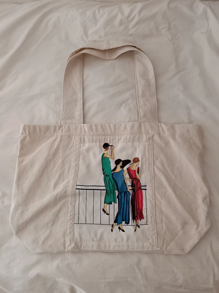 💐 Réductions sur les lots 💐 2 articles : -5% 3 & 4 articles : -10% 5 articles et plus : -15% Pas d'envoi Vinted go, merci ✨ Sac de courses en tissu fait main à partir d'une toile épaisse de coton chinée ainsi que l'imprimé femmes des années 30 d'un chemisier Les coutures sont impeccables sur l'extérieur, parfois un peu moins propres à l'intérieur, voir photo 📏 Dimensions : largeur 58cm, hauteur 39cm #upcycling