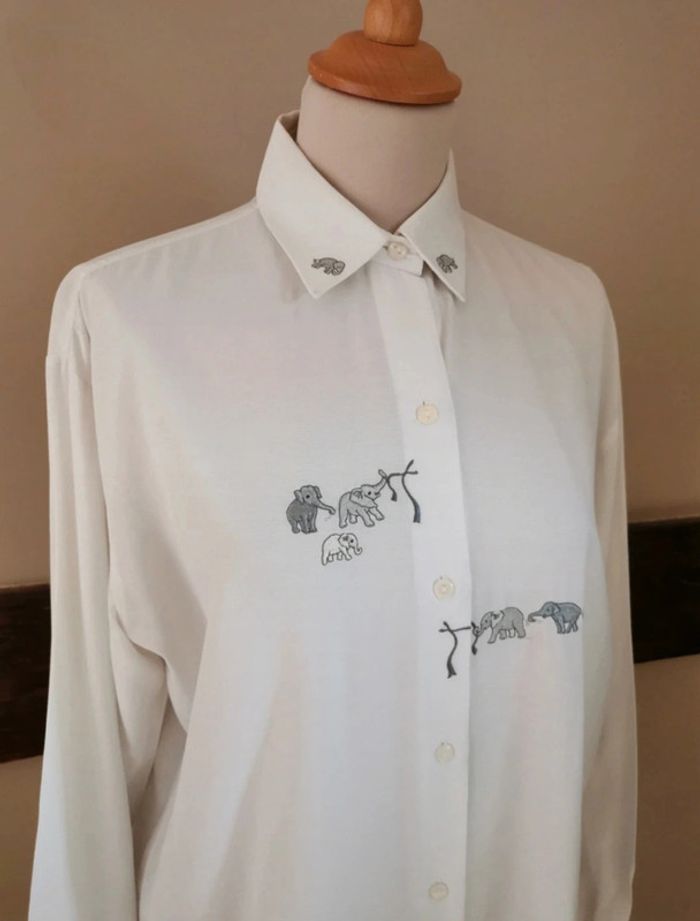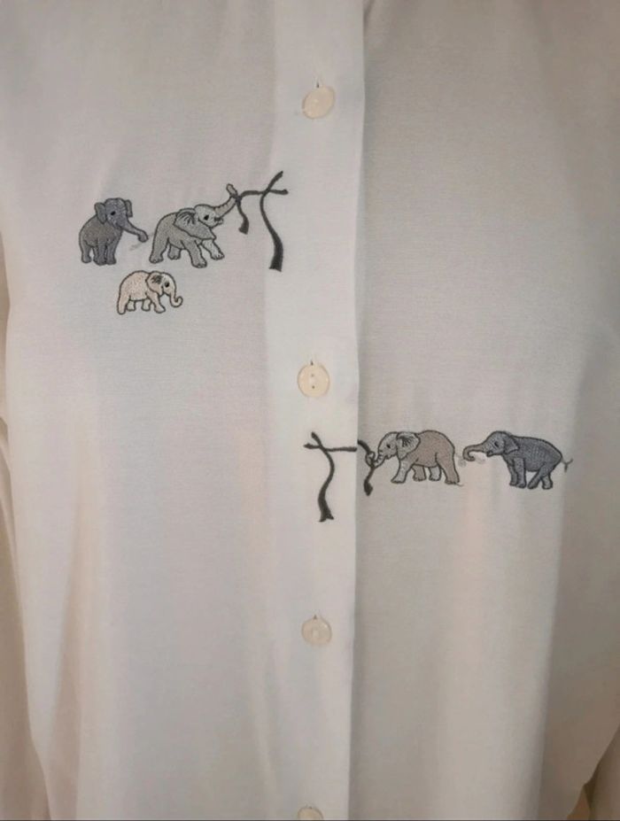 Chemisier blanc éléphanteaux brodés Marine Paris - photo numéro 5
