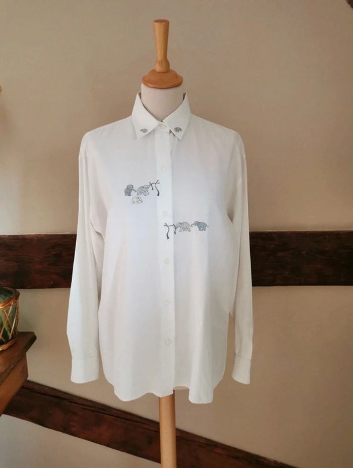 Chemisier blanc éléphanteaux brodés Marine Paris - photo numéro 1