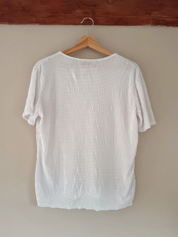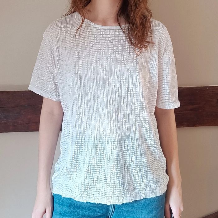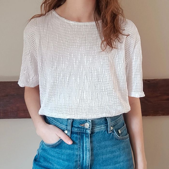 💐 Réductions sur les lots 💐 2 articles : -5% 3 & 4 articles : -10% 5 articles et plus : -15% Pas d'envoi Vinted go, merci ✨ T-shirt ample basique blanc lumineux gaufré Polyester Très bon état Taille 42 Je le porte sur un 36 sur les photos et mesure 1m61 📏 Dimensions à plat : carrure 44cm, largeur poitrine 52cm (extensible à 63cm), longueur 60cm Retrouve moi porté en vidéo sur Instagram pseudo : de_si_belles_fripes ⚠️ Étant une entreprise déclarée payant des charges, merci de respecter mon travail en ne le bradant pas 🙏🏻 #desibellesfripes42