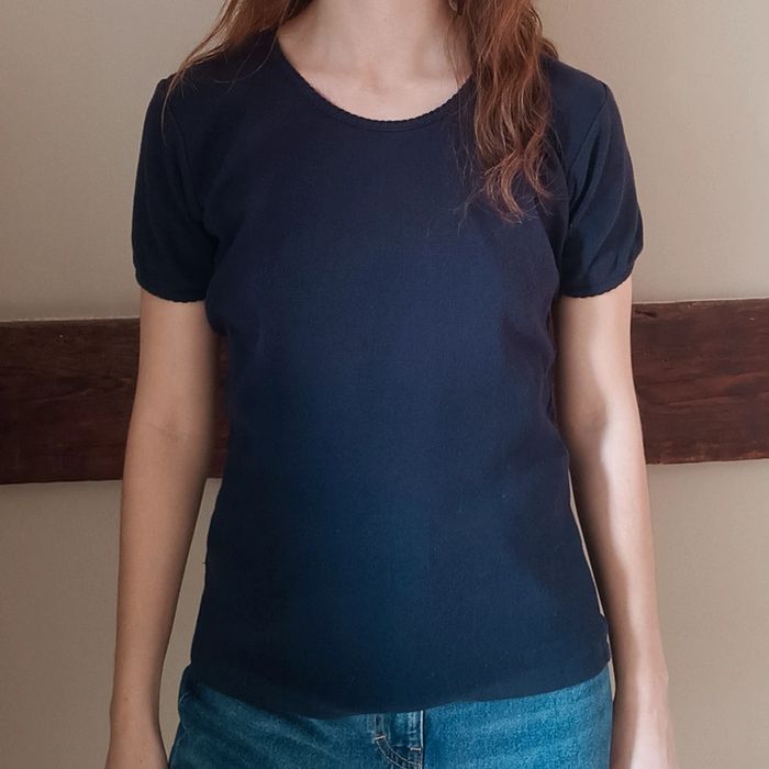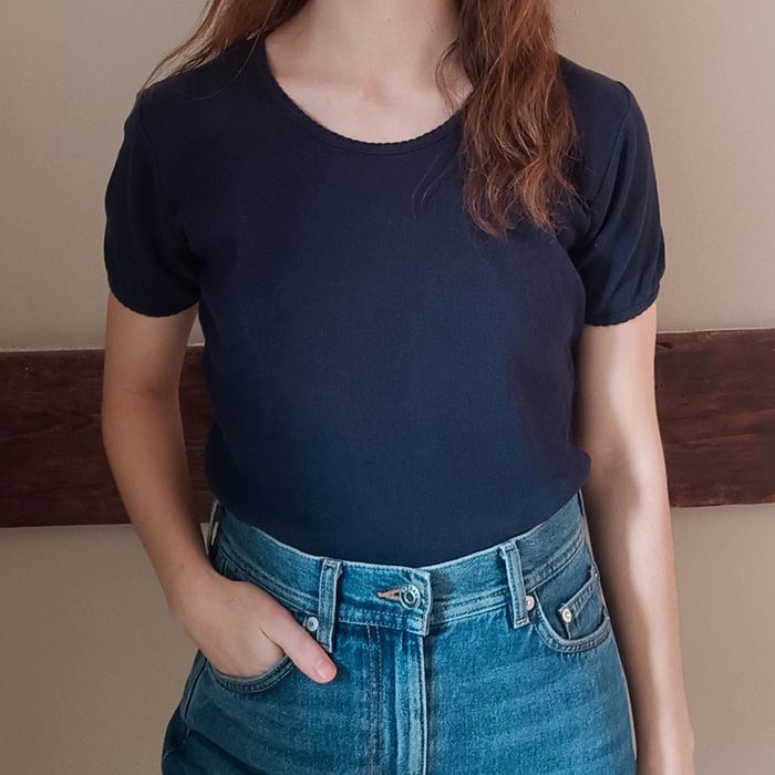 💐 Réductions sur les lots 💐 2 articles : -5% 3 & 4 articles : -10% 5 articles et plus : -15% Pas d'envoi Vinted go, merci ✨ T-shirt basique manches courtes bleu marine Eddy love by RB, années 90 95% coton 5% élasthane matière épaisse État impeccable Taille 2 sur étiquette mais conviendra plutôt à une taille 36 actuelle Je le porte sur un 36 sur les photos et mesure 1m61 📏 Dimensions à plat : carrure 36cm, largeur poitrine extensible jusqu'à 47cm, longueur 56cm ⚠️ Étant une entreprise déclarée payant des charges, merci de respecter mon travail en ne le bradant pas 🙏🏻 #desibellesfripes36